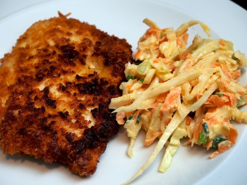 Chicken schnitzel with apple coleslaw – serves 4