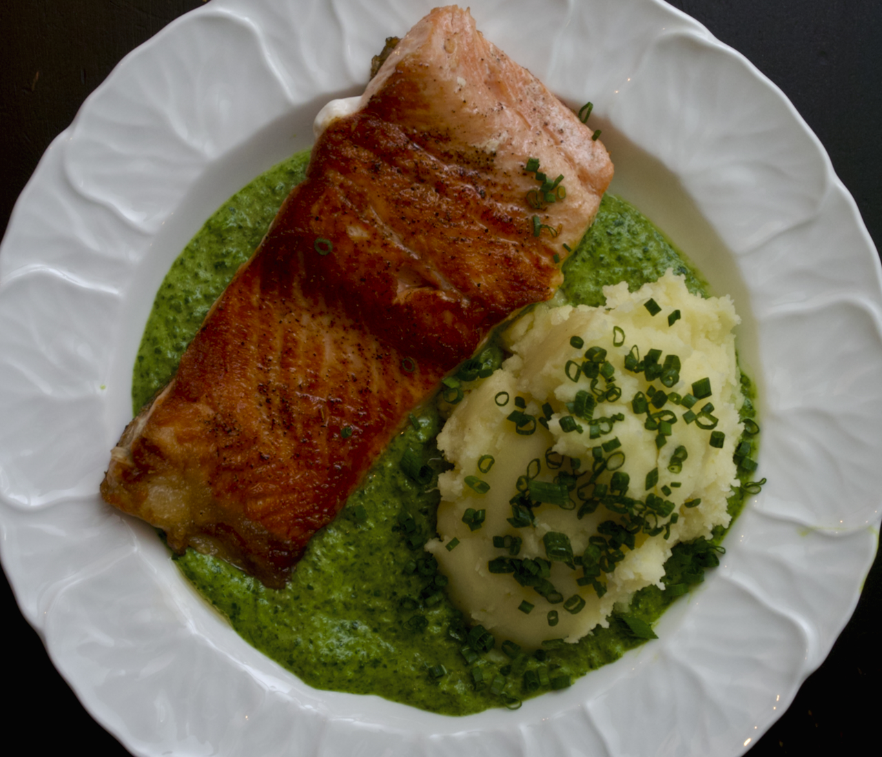 This comforting plate pairs buttery mash with with crisp-skinned Irish trout fillets. Plus there’s a spinach and watercress sauce to bring the dish to life.