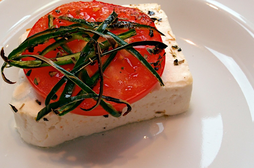 Preheat the grill. Put the cheese slices side by side in a shallow flameproof dish. Put a tomato slice on top of each feta square and top with the slices of chilli. Sprinkle with oregano and pepper and drizzle with a little bit of oil. Grill for 6-8 minutes, until the tomato and chilli are lightly browned. Serve immediately with a glass of ouzo if you have some (we didn’t 😦 maybe next time).