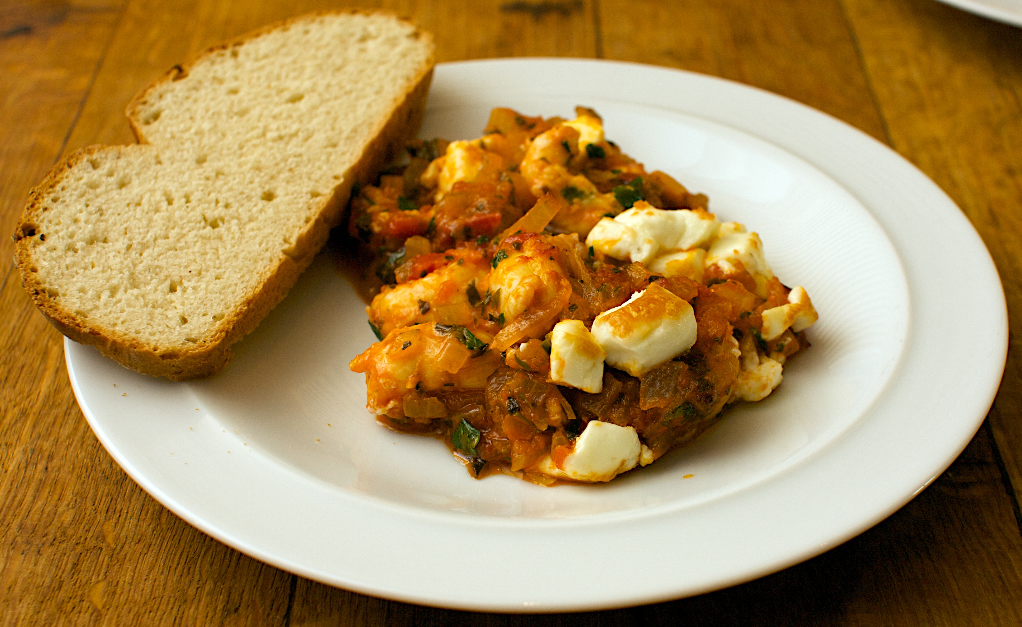 This is a Greek mezedes dish which works really well as a starter for 4 with some crusty bread. We divided this onto plates but its also nice (and more common in Greece) to plonk the dish on the table and let everyone serve themselves. Saganaki dishes take their name from a small shallow frying pan used to fry or braise small portions of food, like cheese or shellfish.