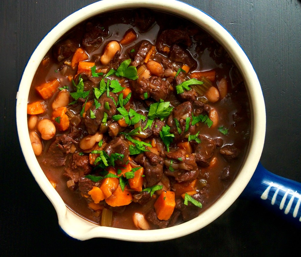 Cover the casserole with a lid and bake for 1 hour, then remove the lid and cook for another 30 minutes or until the topping is tender and golden brown. Scatter over the parsley to serve.