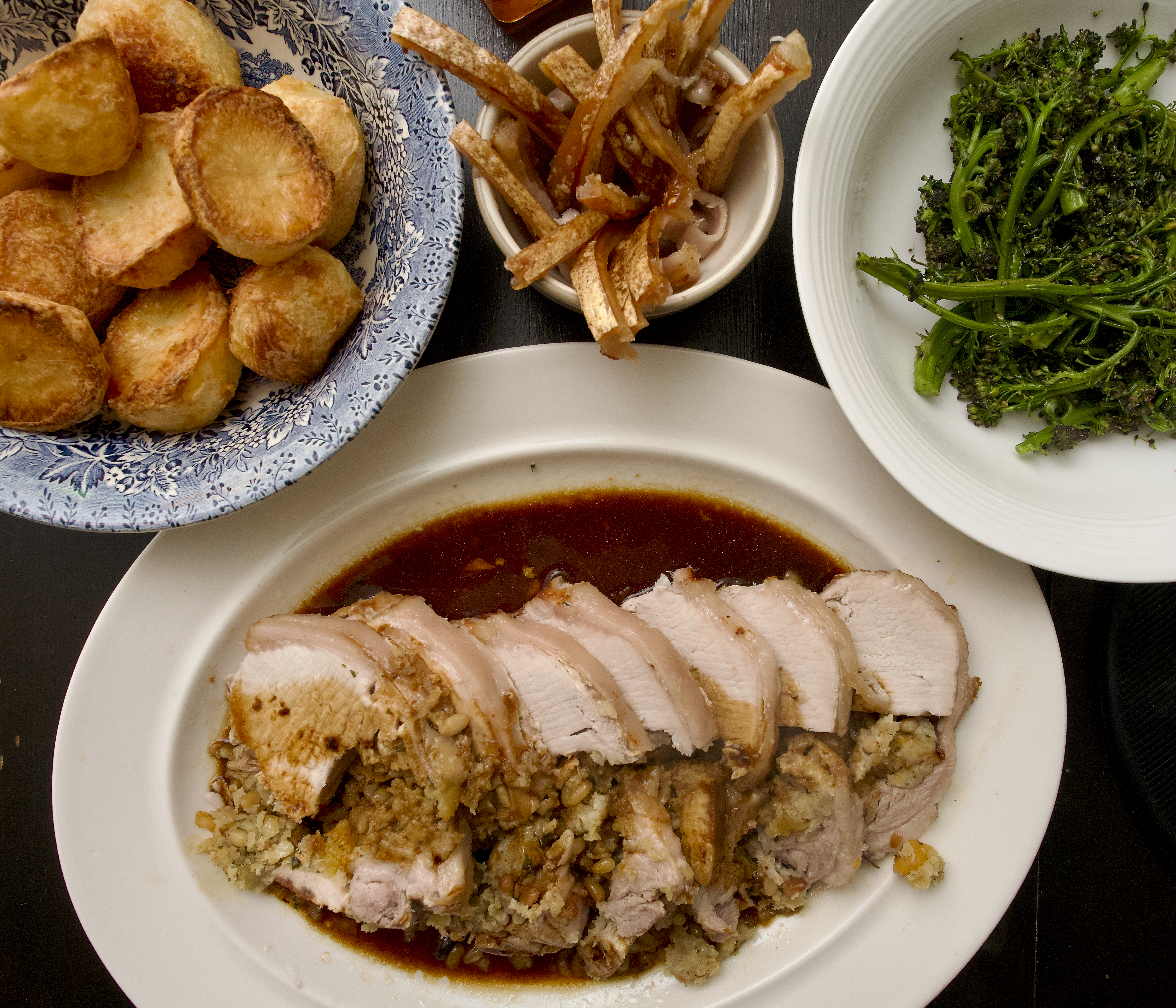 To serve, divide the mash between plates, top with a pork chop and a handful of rocket leaves. Drizzle over any tasty juices over the top.