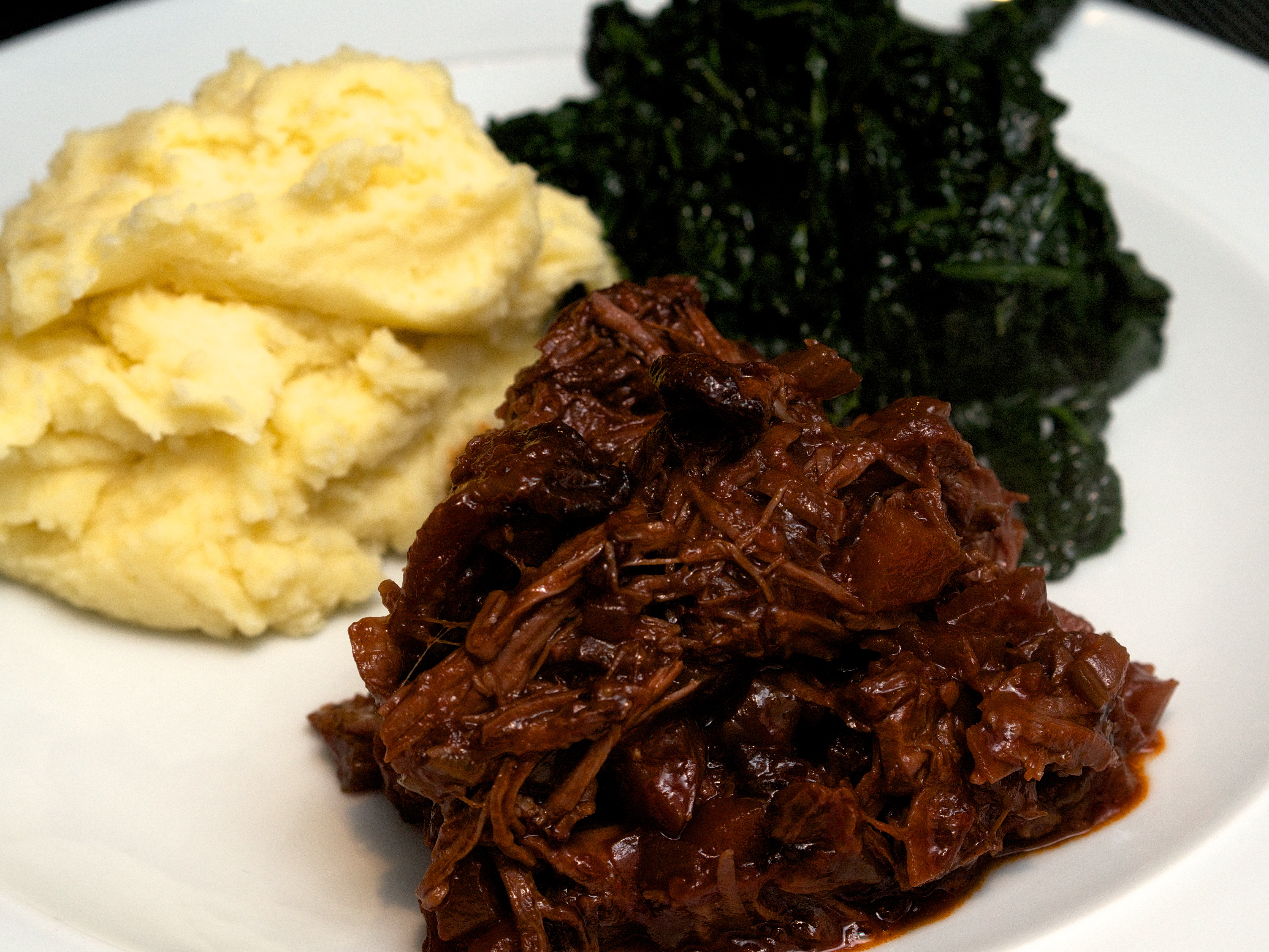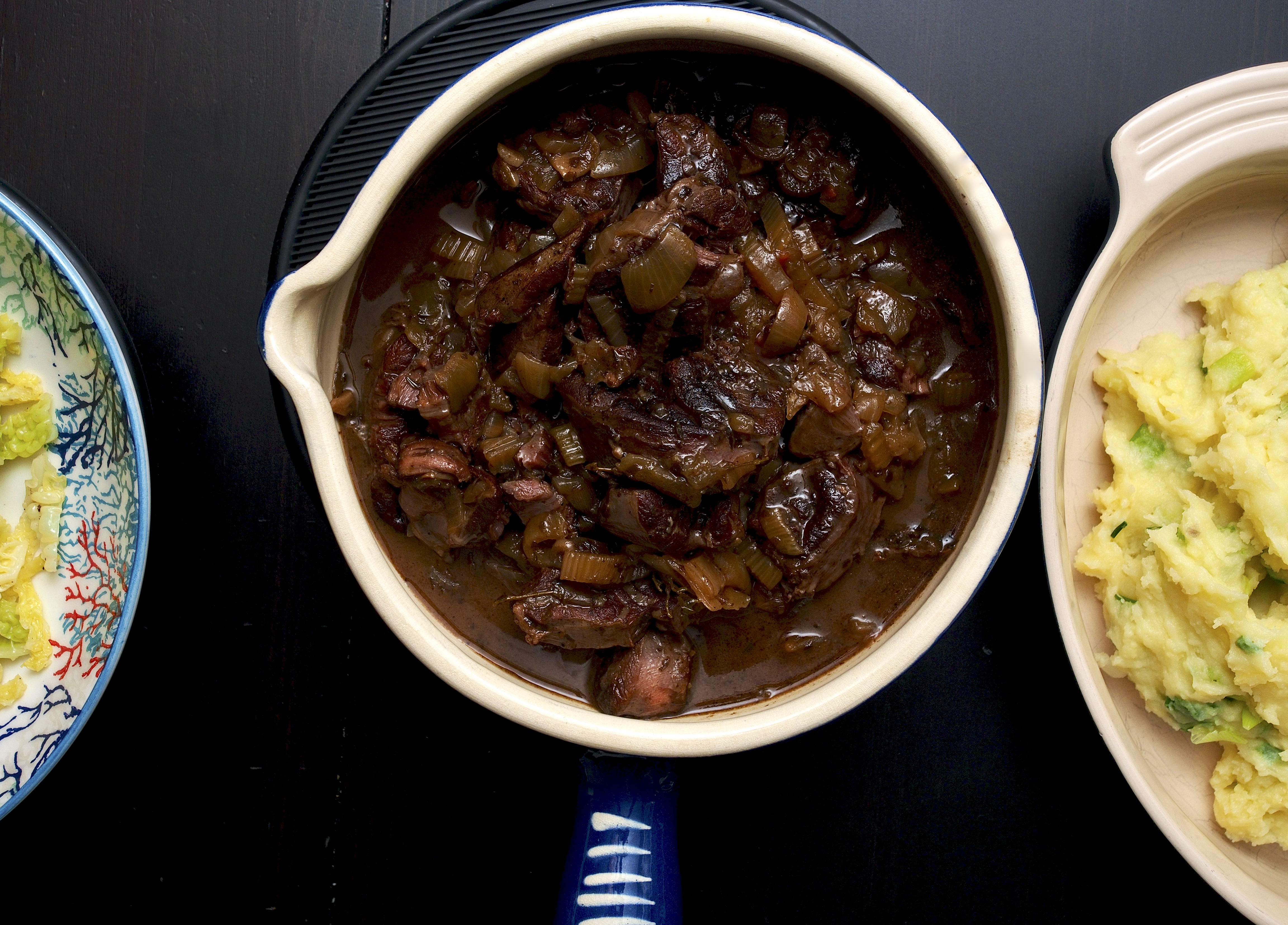 Return the meat to the pan. Bring to the boil, cover with a lid, and put into the oven for 2-2½ until the meat is tender.