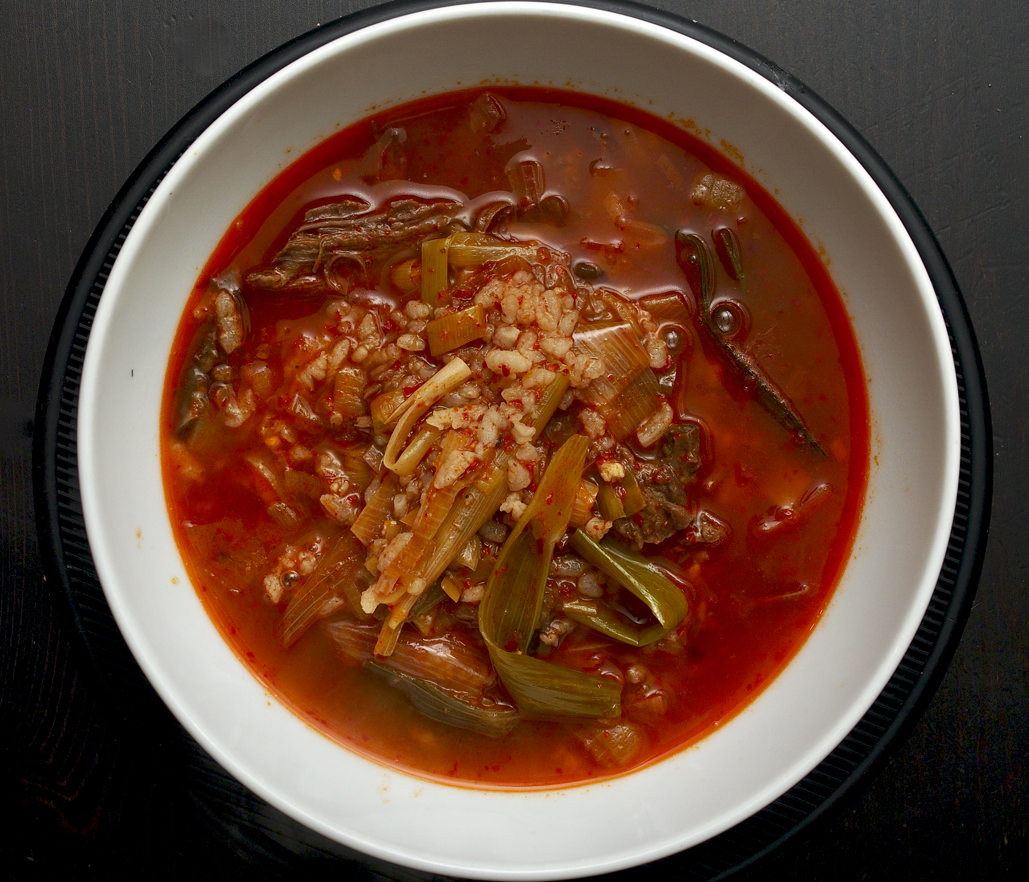 Melt the ghee in a small saucepan over a medium heat. When it is melted and hot, remove from the heat and stir in the soy sauce, maple syrup, garlic, black lime and chilli flakes.
