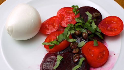Real Live Irish Buffalo Mozzarella Salad (with beetroot, capers & tomatoes) – to serve 4