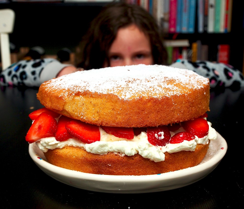 We’re not big on icing, so when we’re ready to eat it I just glaze it with a spoon or two of apricot jam melted on the stovetop with a teaspoon or two of water. You can put blanched almonds on top for decoration if you like at this point. Sometimes we skip this stage too and just dig in.