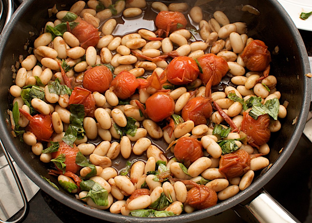 • Add 2 tins of drained and rinsed cannellini beans and simmer for another 5 minutes.