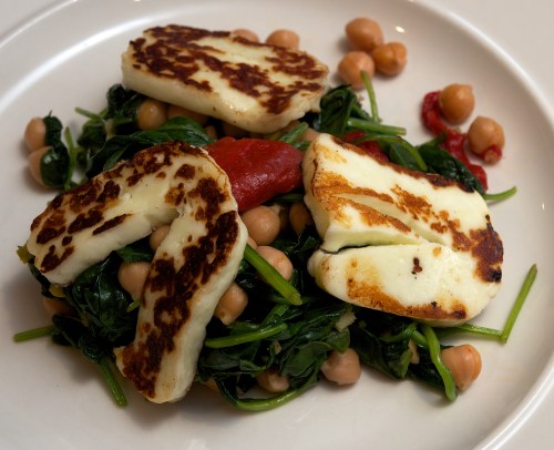 This is a super simple and fresh weeknight meal for two. Halloumi cheese always feels like a bit of a treat.
