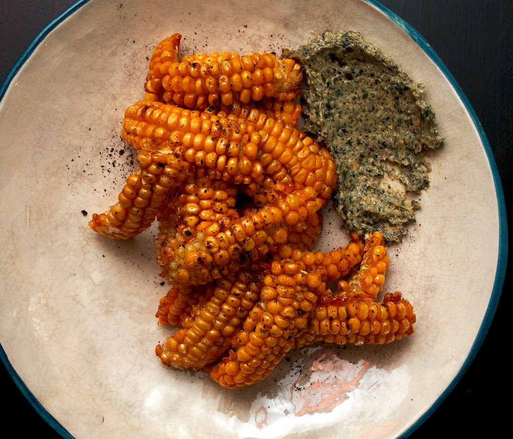 Transfer the chicken and corn to a plate and cover to keep warm.