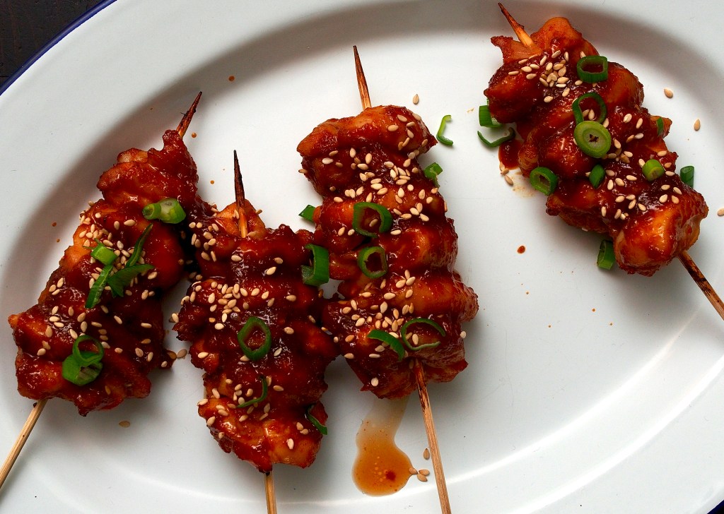 You need to marinade the salmon fillets the day before. Make the marinade by mixing the sugar, mirin and sake together in a small pan and bring to the boil. Reduce the heat and simmer for 2-3 minutes, stirring until the sugar has dissolved. Take off the heat and whisk in the miso, then stir in the gochujang paste and leave to cool.