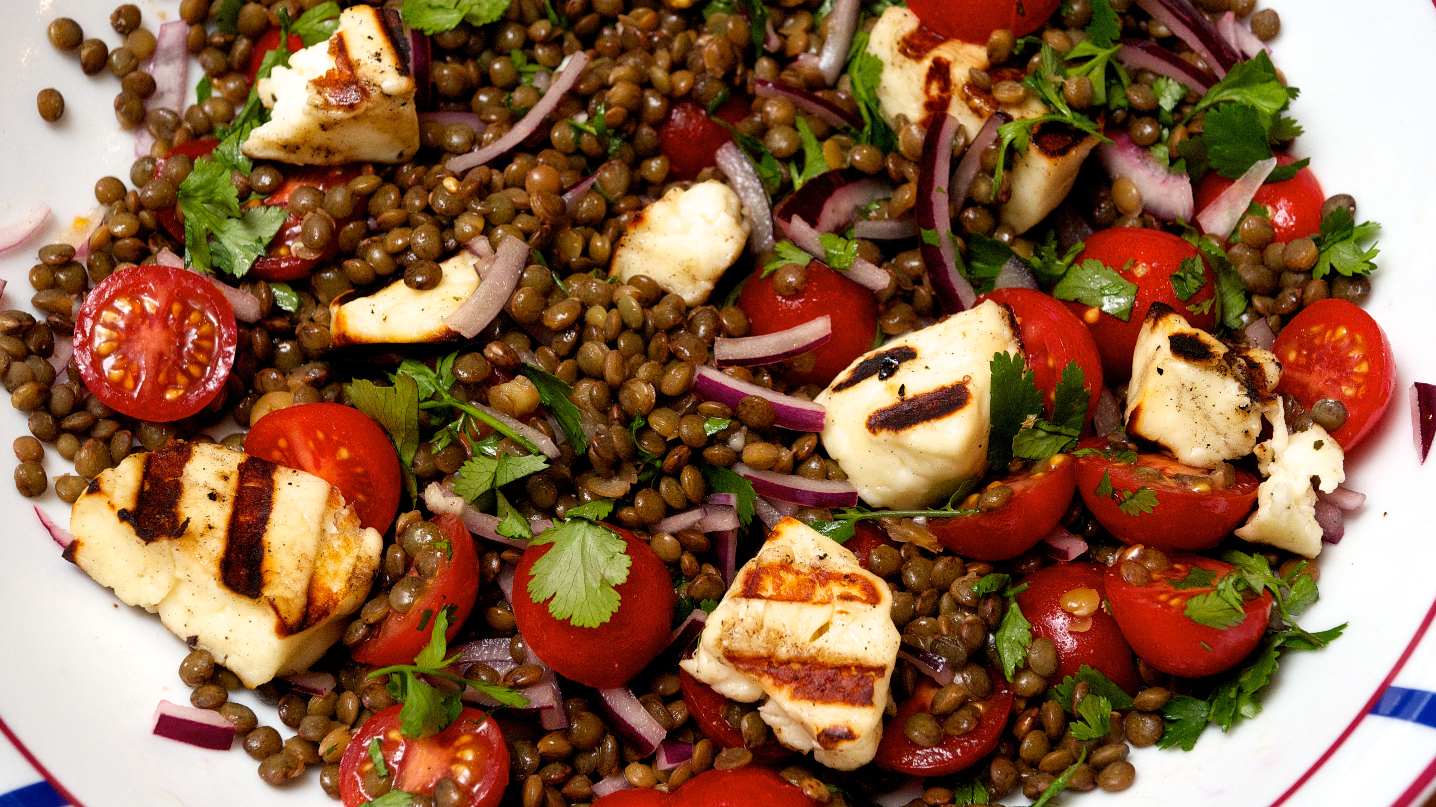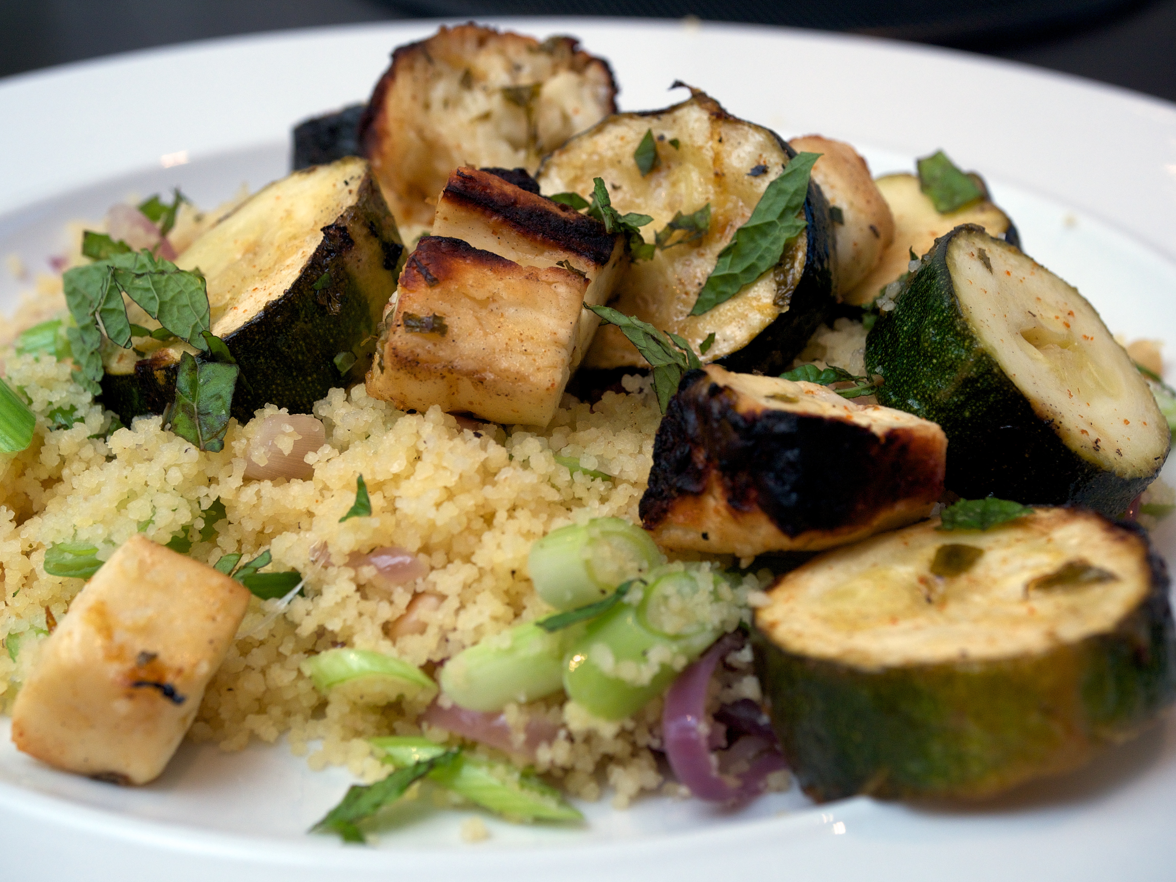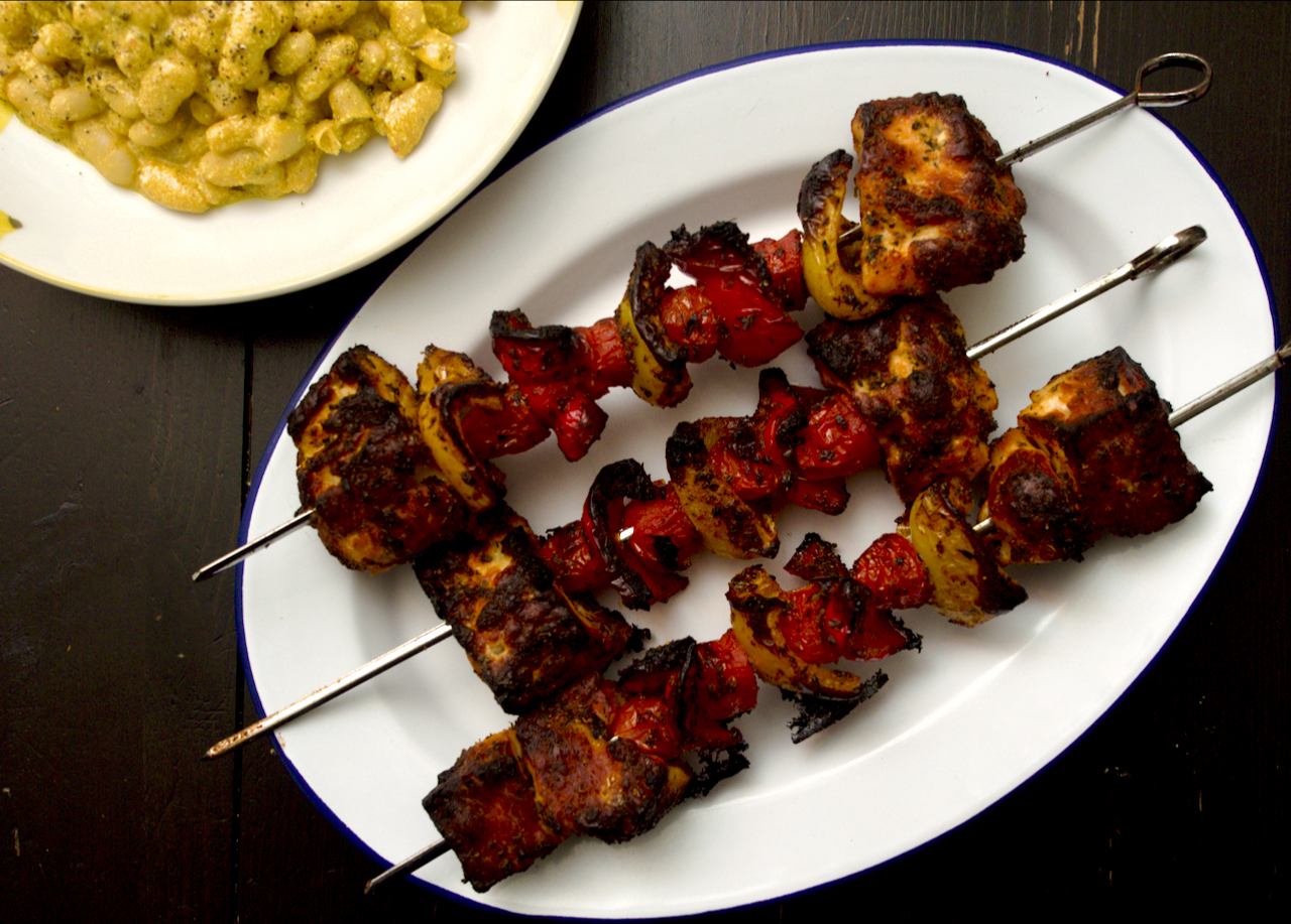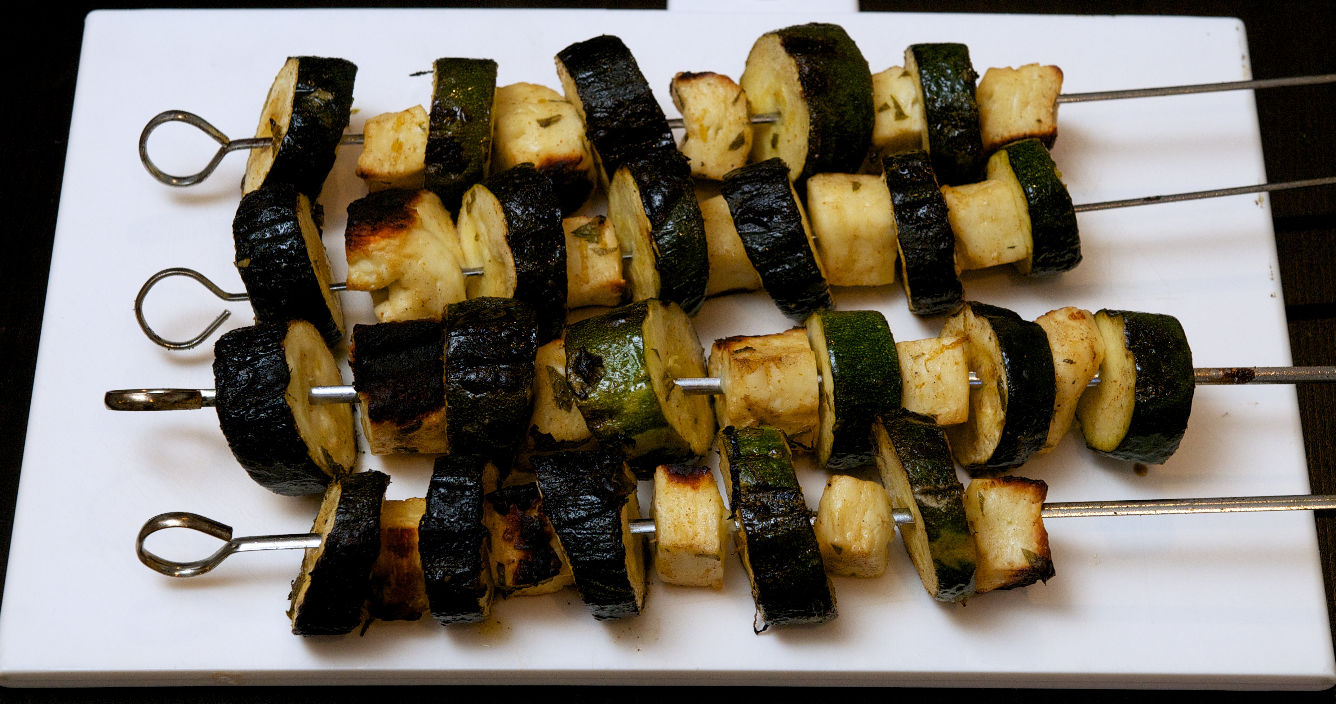 An excellent recipe for squeaky cheese aka halloumi. Great as a main course (we served with a bean dish and flatbreads) or as a side.