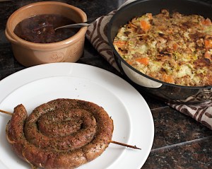 Lift the sausages out of the sauce, then put the tray on the hob and reduce the sauce to a nice thick consistency, before putting the sausages back in. Check the seasoning and serve with some warm bread and a green salad.