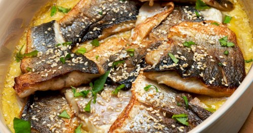 Cod Baked with Tahini Sauce & Saffron Rice – serves 4