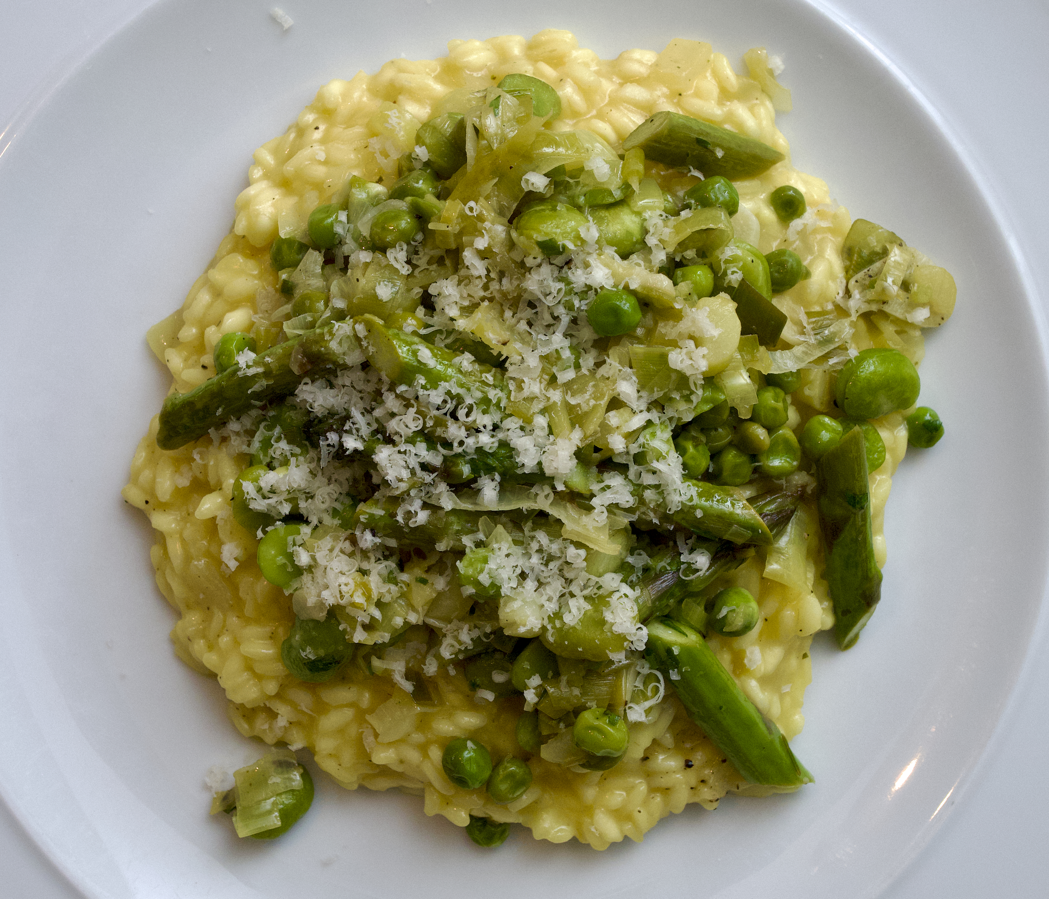 A delicious fish risotto which also includes Parmesan cheese. We’re firm disbelievers of the “no cheese with fish” rule!