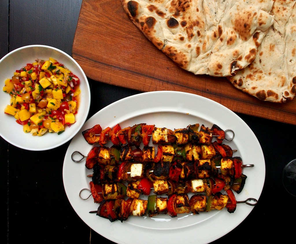 Cook the skewers on the hot grill tray (if you have one) for a couple of minutes on each side or until the fish is crispy. Don’t be tempted to turn them too quickly or they might stick.