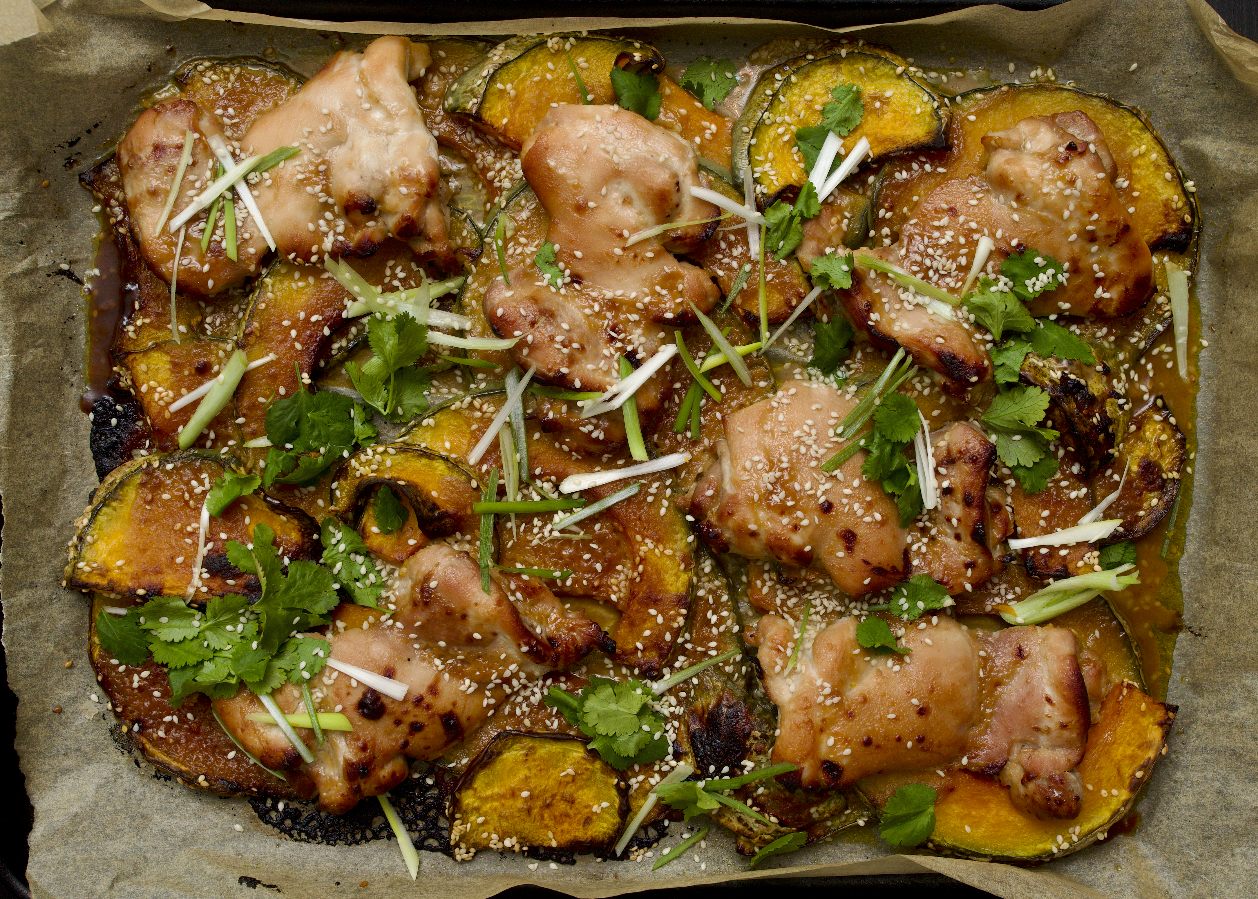 Scatter over the scallions and black sesame seeds and serve with lemon wedges.