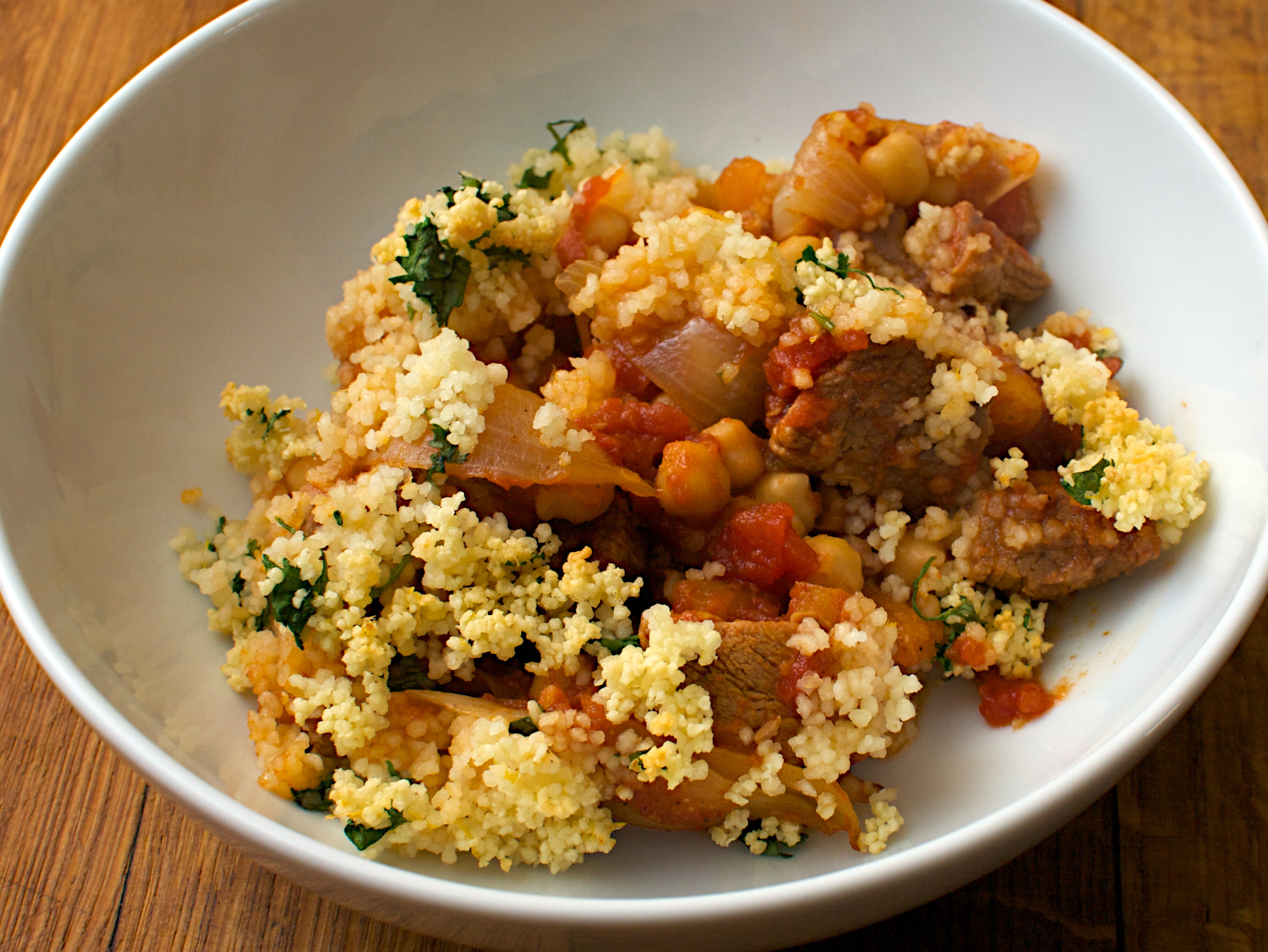 Add the chickpeas and cook for another hour, adding the apricots for the last 10 minutes. Serve with giant or regular couscous and sprinkle with the coriander.