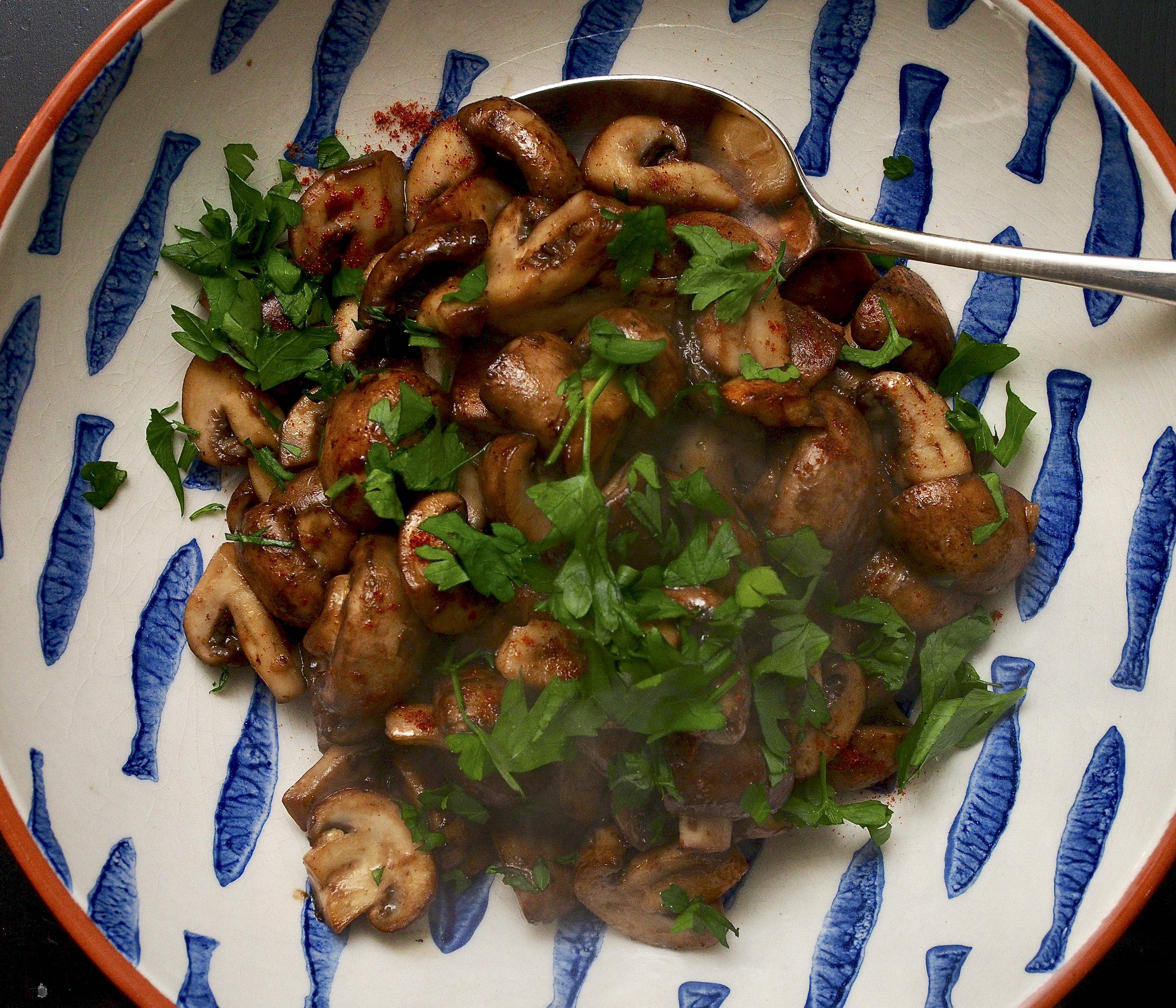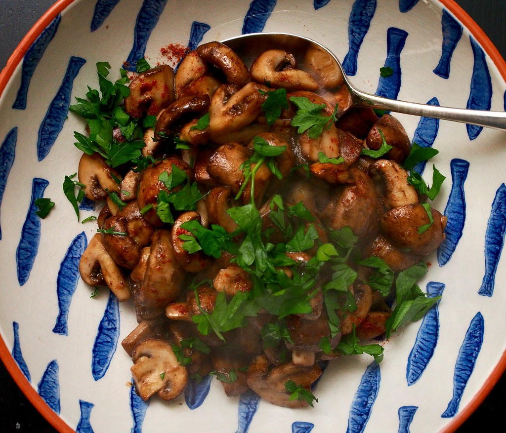 These tasty mushrooms with horseradish mayo are a great addition to a regular barbecued burger. They’re fully of umami savouriness. Make your own burgers, or buy some from a good butcher.
