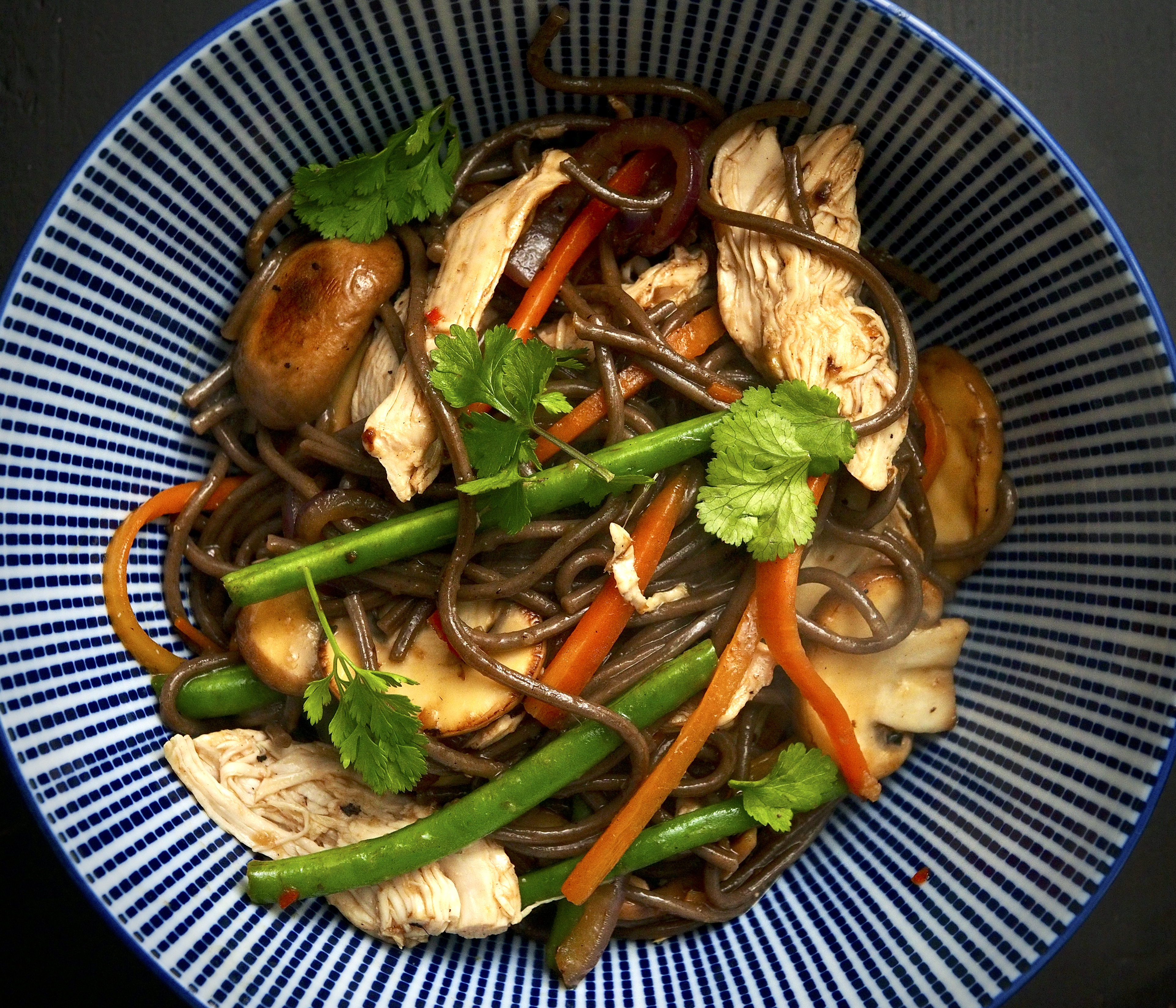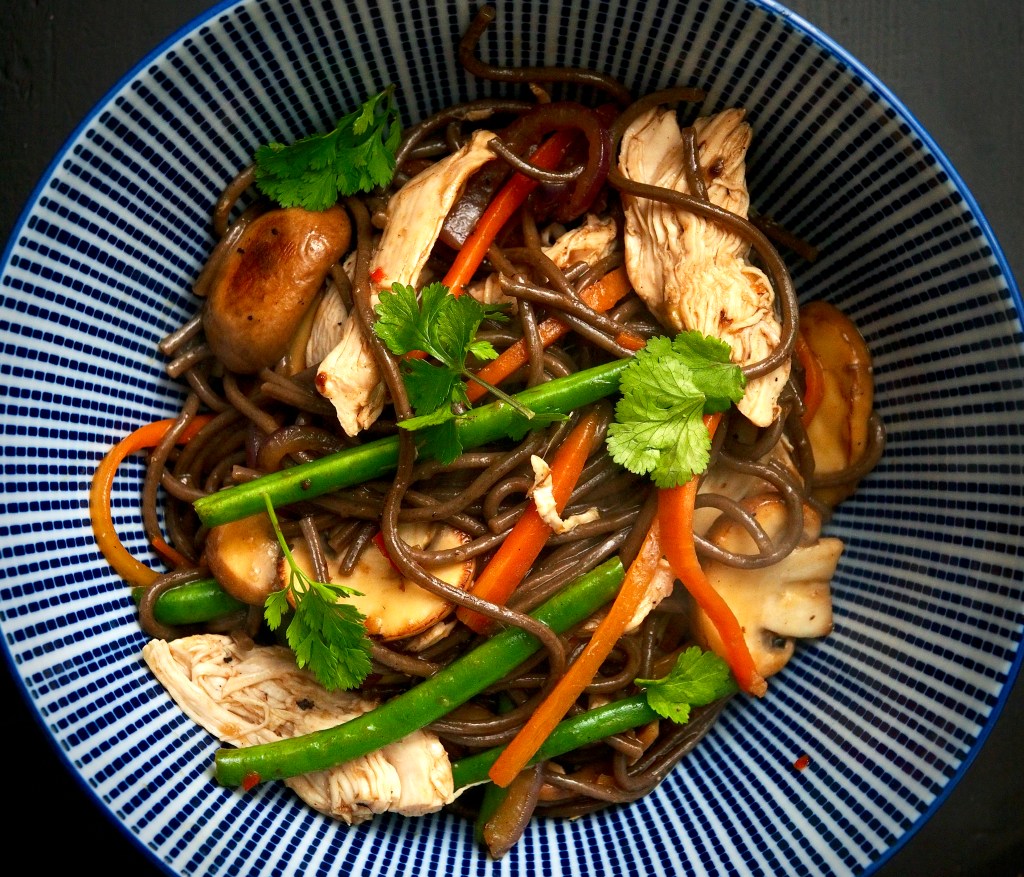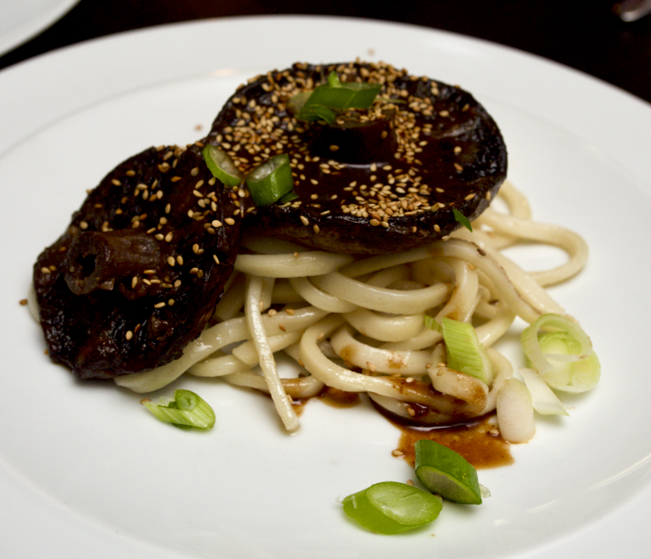 Mix the soy sauce, sesame oil, ginger and garlic together in a bowl. Set the mushrooms on a plate, stem side up, and pour over the marinade. Set aside for 30 minutes to 1 hour.