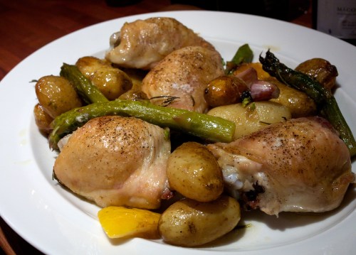 Rosemary Roast Chicken Thighs with Asparagus & New Potatoes – serves 4