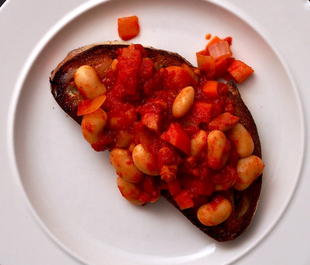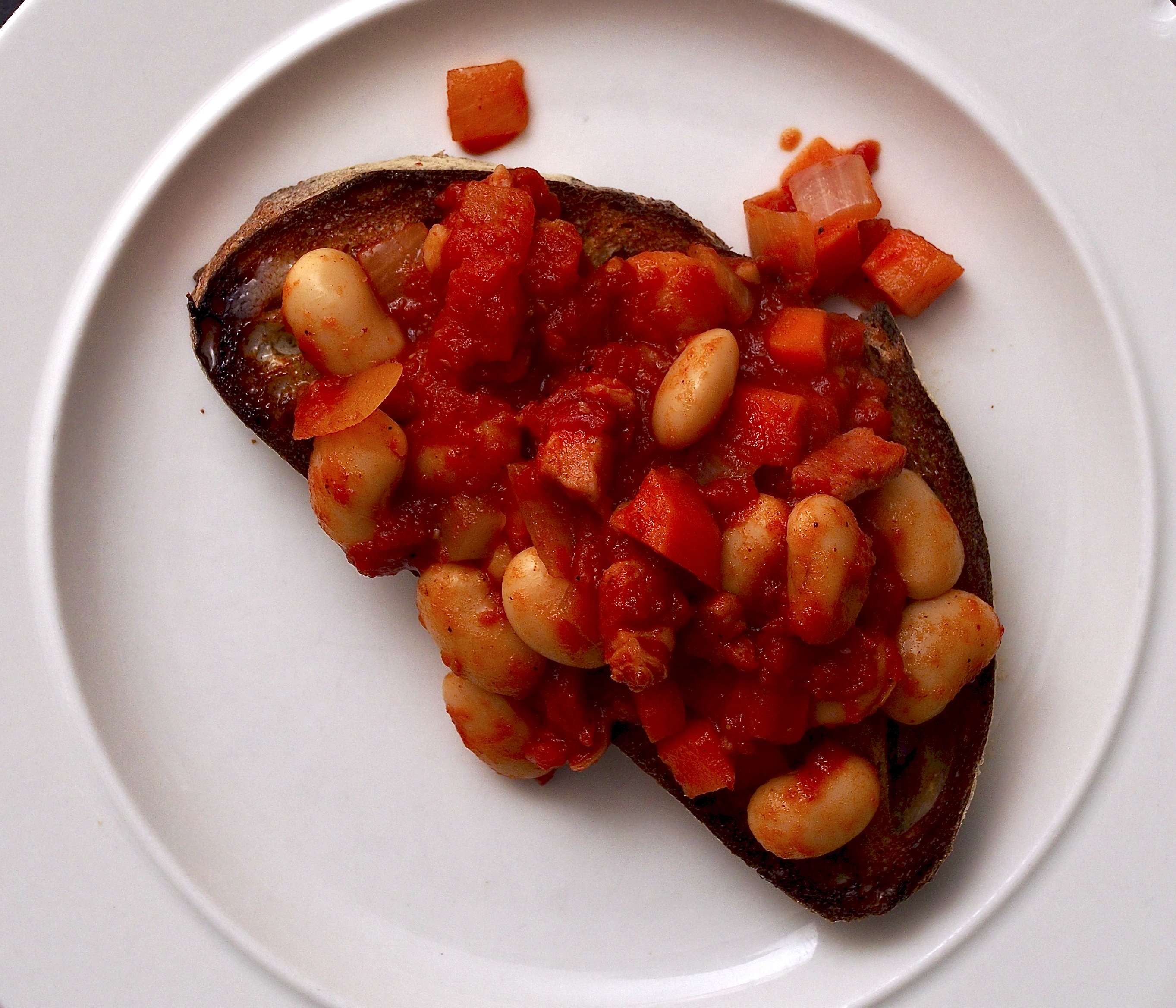 Much more filling than the tinned variety but unlike a number of other baked bean recipes, you don’t have to start with dried beans. This is quick and still pretty handy for lunch.