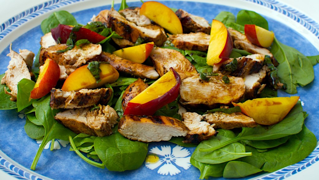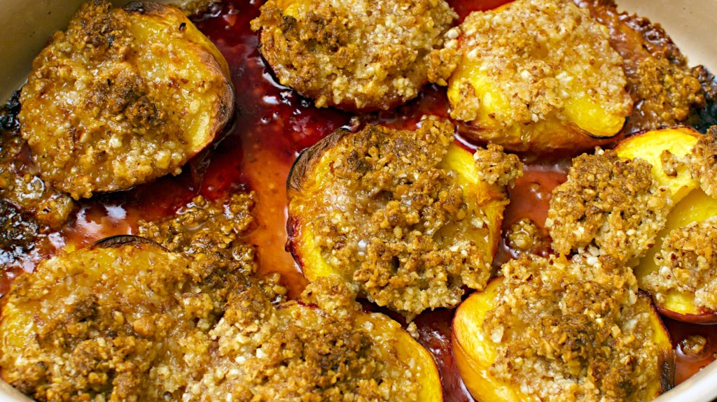 It has not felt very summery in Ireland this year but we haven’t let that put us off cooking for the season. There are still some nice peaches around and this makes a lovely lunch!