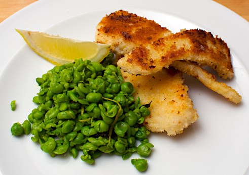 Home-made fish fingers with mushy peas – to serve 4