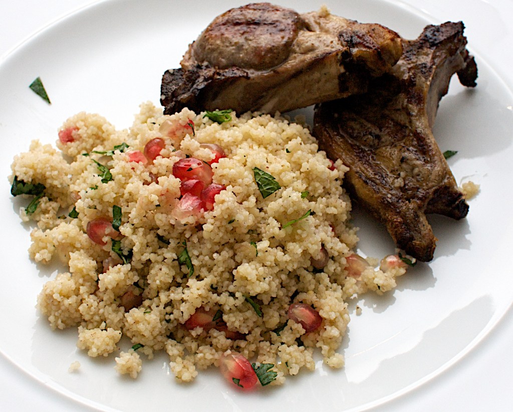 Heat 1 tbsp of oil in a frying pan and quickly fry the lamb until warm and crispy. Season, then fork through the rice with the feta, herbs and nuts. Transfer to a large dish and scatter over the pomegranate seeds. Serve with some yoghurt on the side if you like.