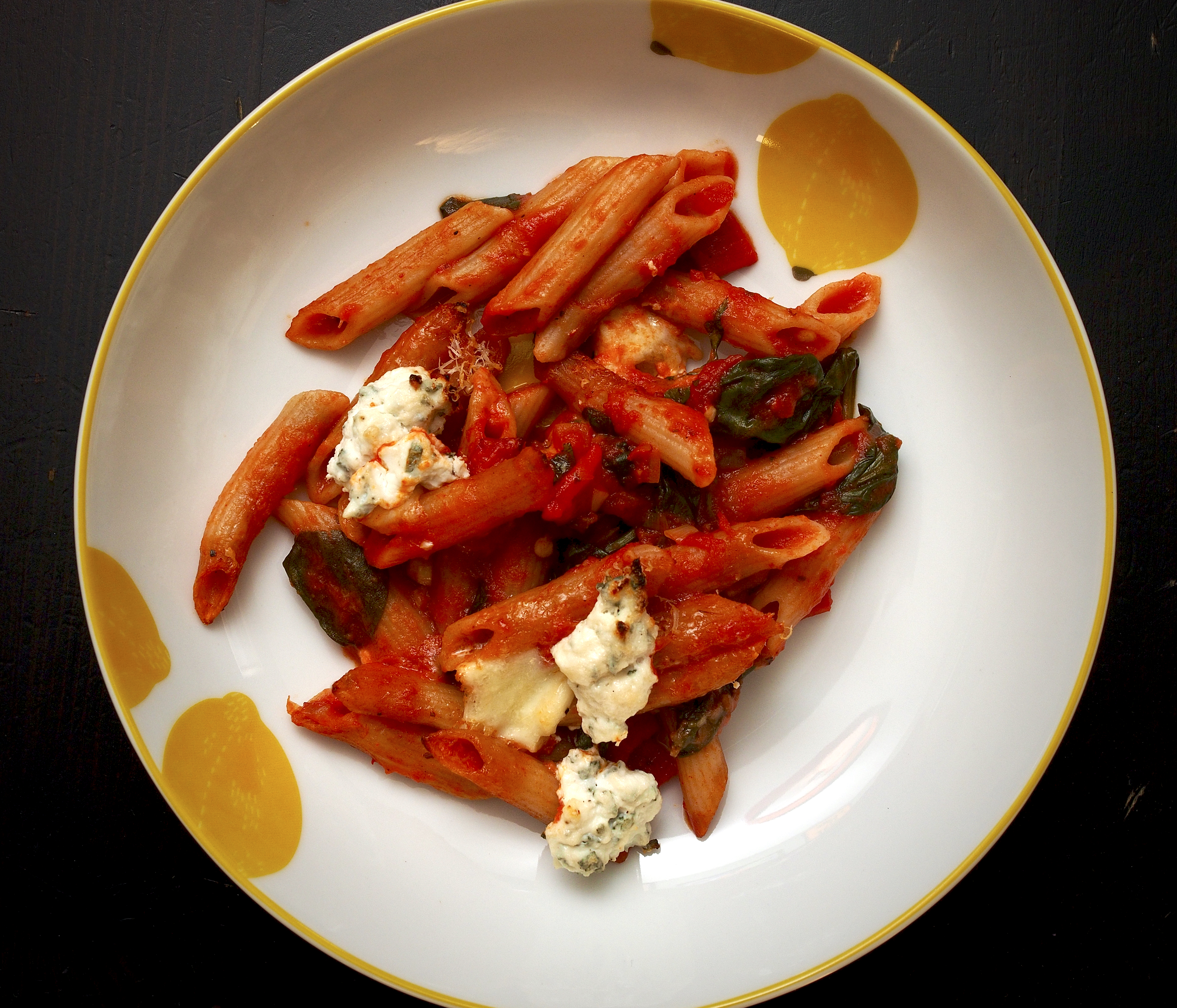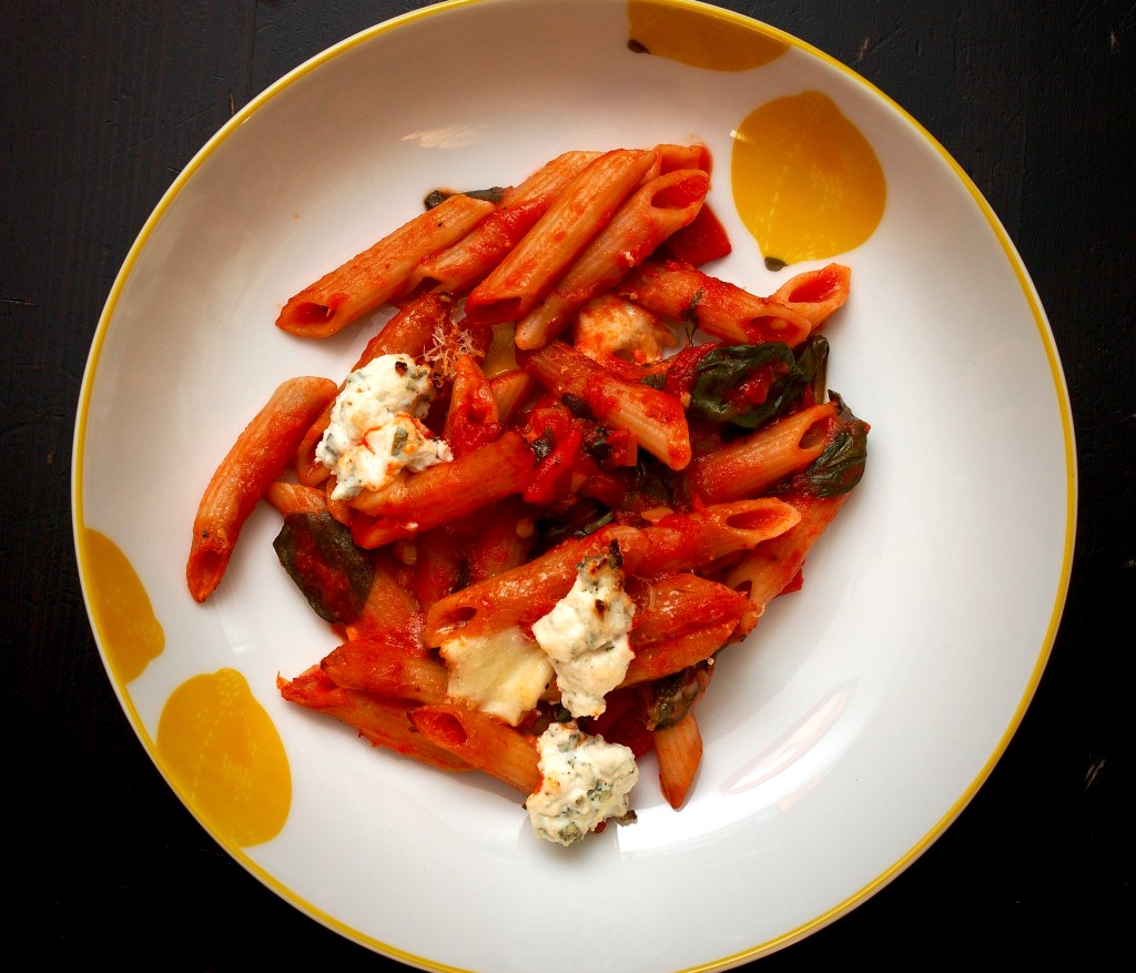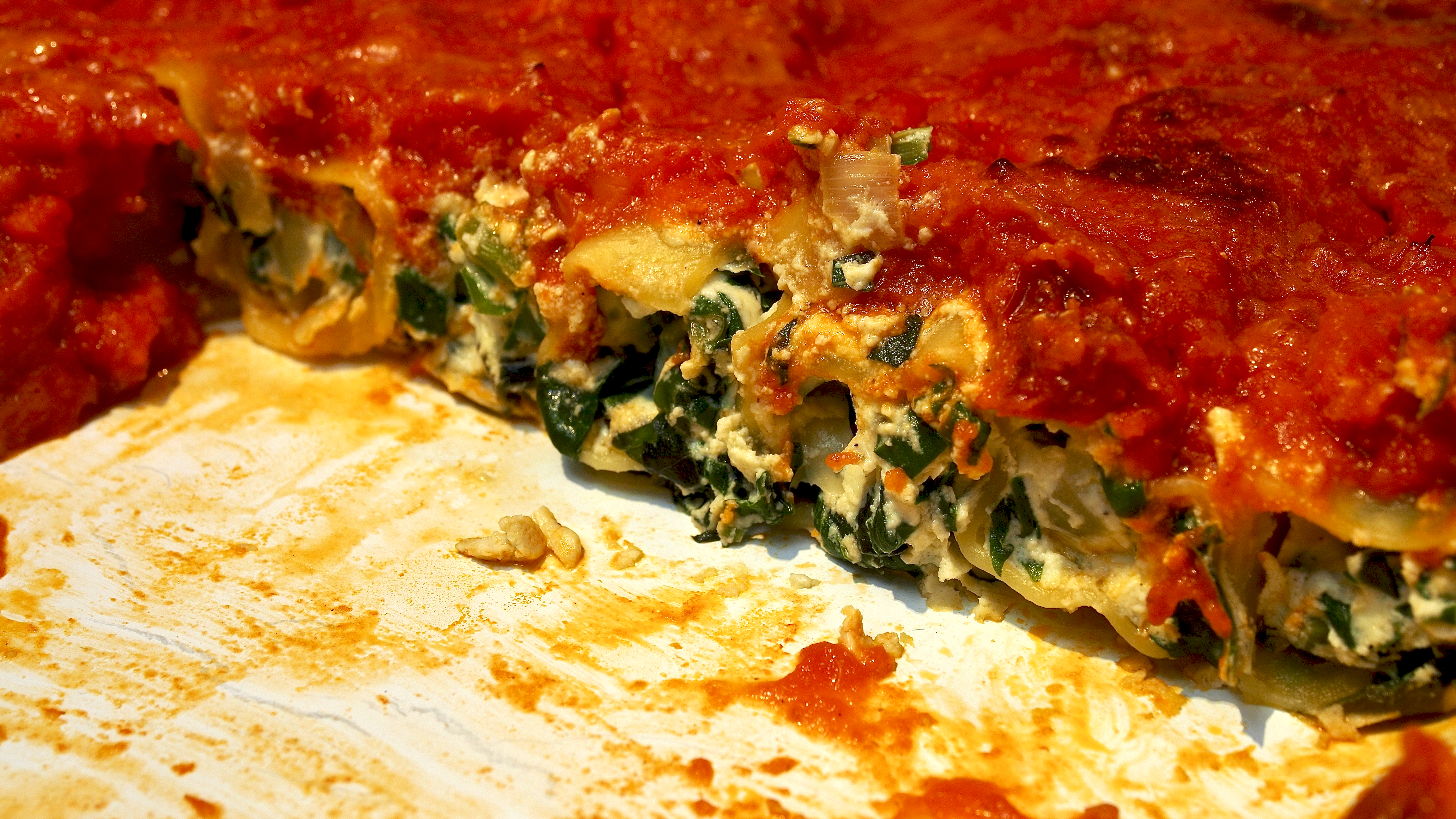 Pour half the passata over the bottom of a large baking dish and season with salt and pepper. Stuff the shells with the ricotta and spinach mixture, then add the shells to the dish on top of the sauce, stuffed side up. Pour over the rest of the passata and season with a little more salt and pepper.