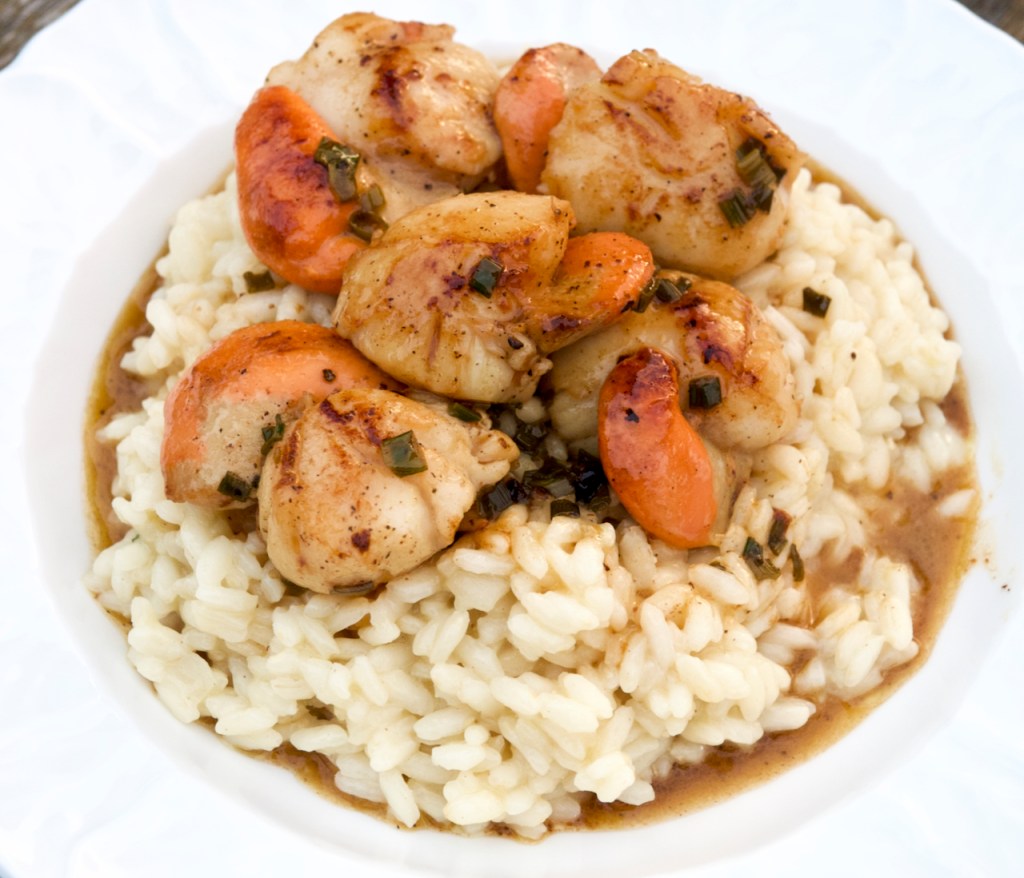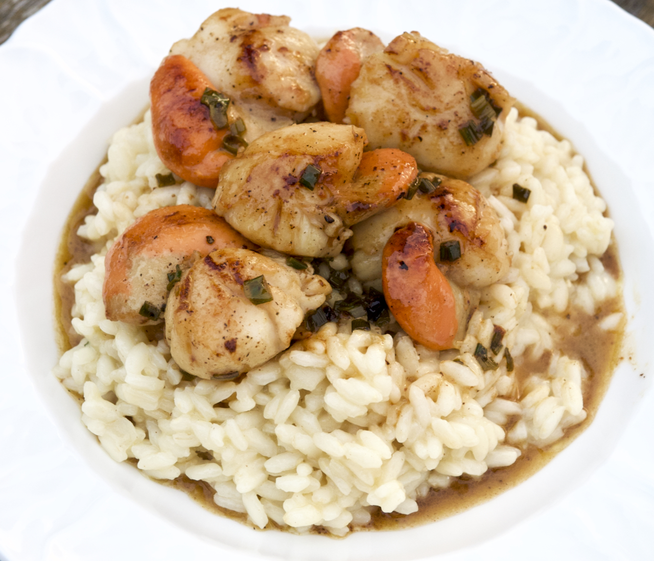 You get a much more generous helping of scallops when you cook them for yourself at home and they make a super fancy risotto.