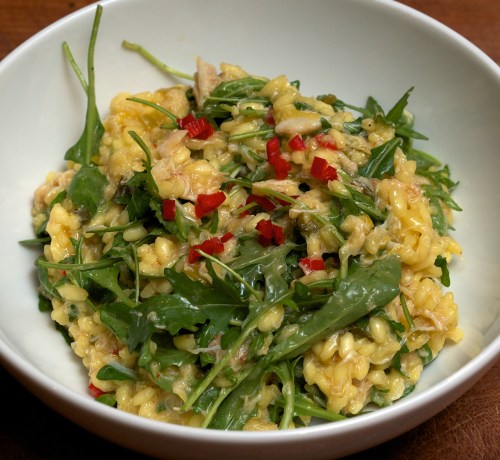Another delicious dish by Yotam Ottolenghi who recommends making some home-made stock which we duly did. Throw some aromatic vegetables and herbs into a large pot (we used carrot, celery, onion, parsley, garlic, lemongrass and fennel), cover with water and simmer for 30 minutes. This dish does take some time to make but is completely worth the effort and time with levels of flavour and texture that really make this risotto special.