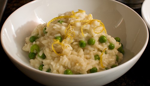 Carry on like this for about 15-17 minutes, continually adding stock as above. After about 12-14 minutes add, add the peas and the sausages that you sautéd earlier. Slow up on the stock when you get near the end so the rice doesn’t become too wet and soupy or it will get too sloppy when you add the butter and Parmesan at the end.