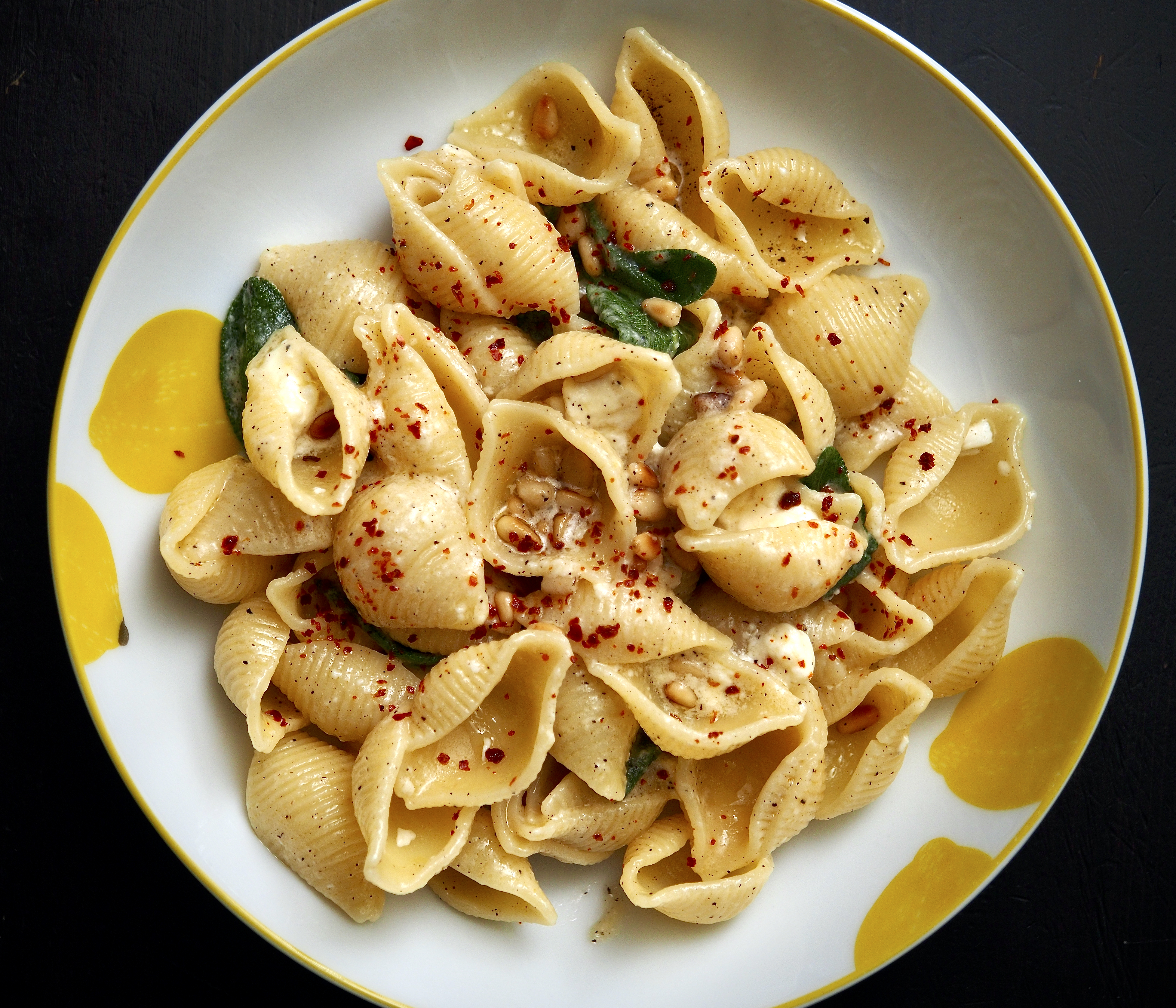 Put the paper-lined pot back over the heat and pour in a generous drizzle of olive oil and the butter. Sprinkle in some sea salt, then scatter in enough rice to cover the base of the pan.