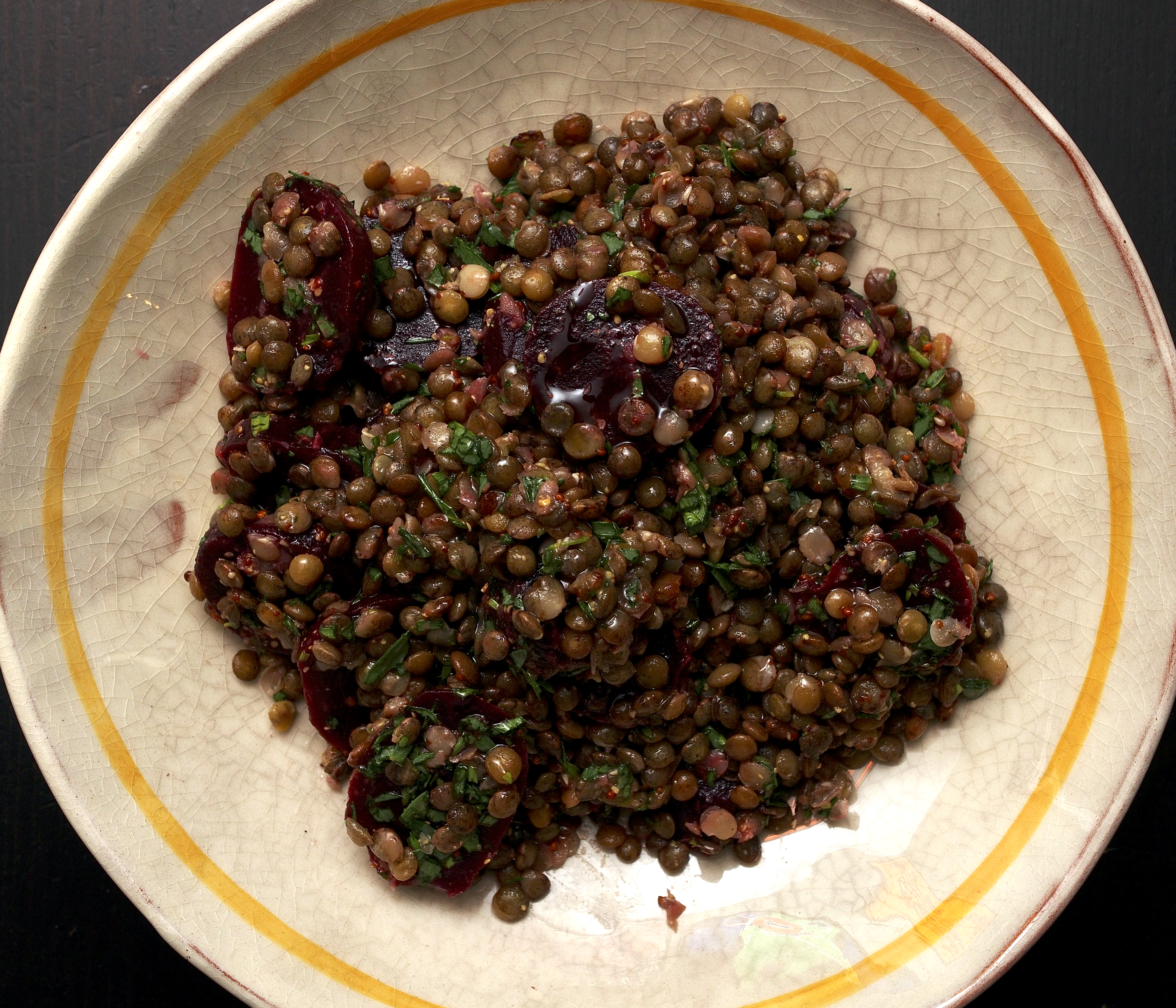 Beetroot & lentil salad with mustard dressing – serves 5-6