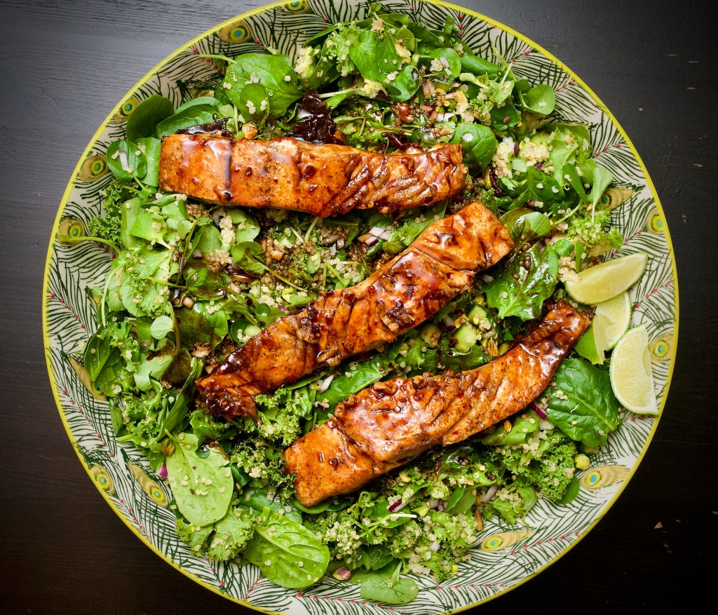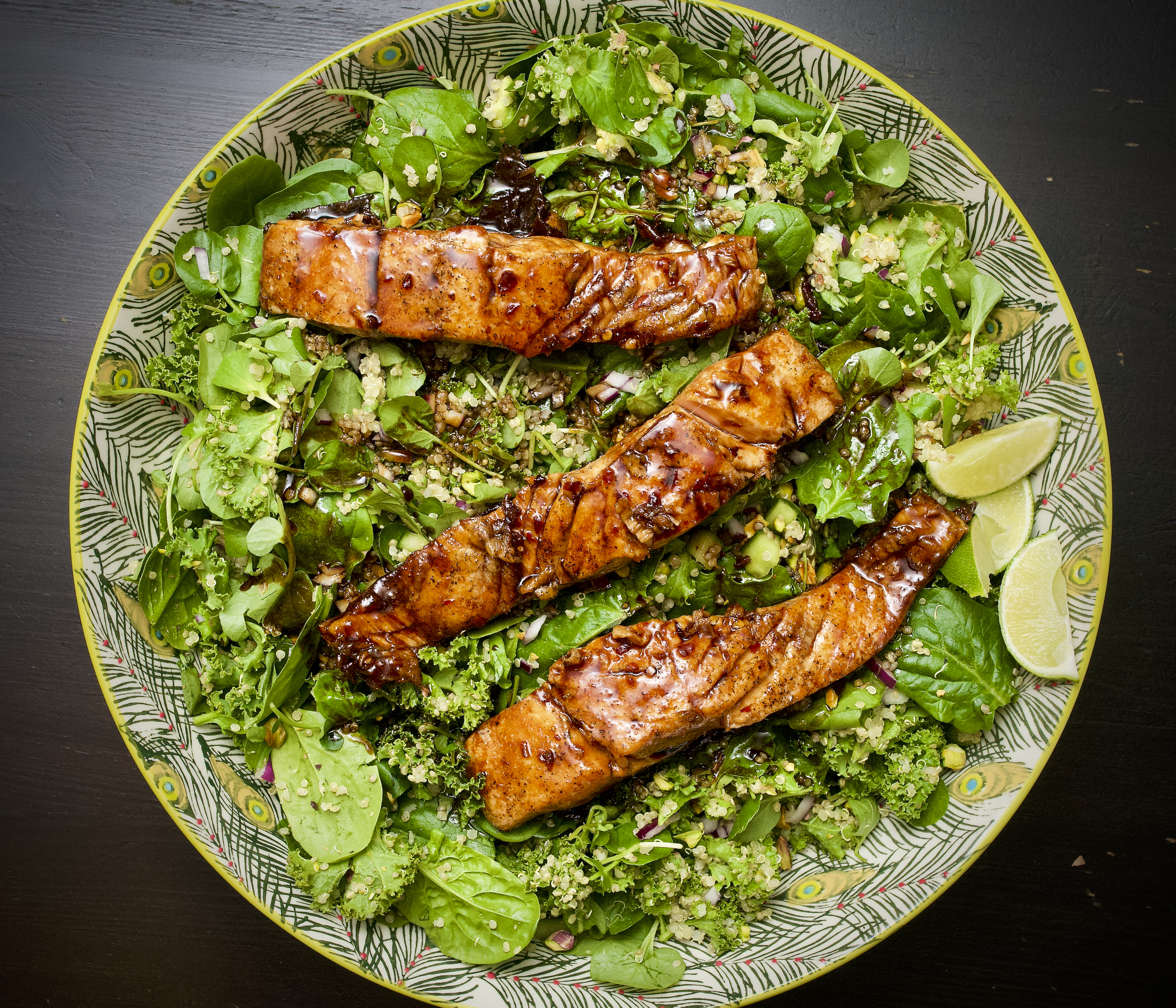 This dish is big on flavour but could not be simpler to throw together. Leftover salmon is unlikely but delicious for lunch the next day.
