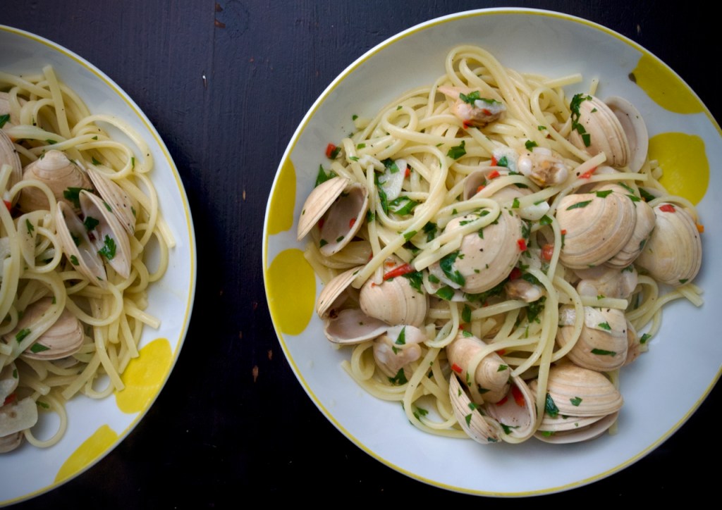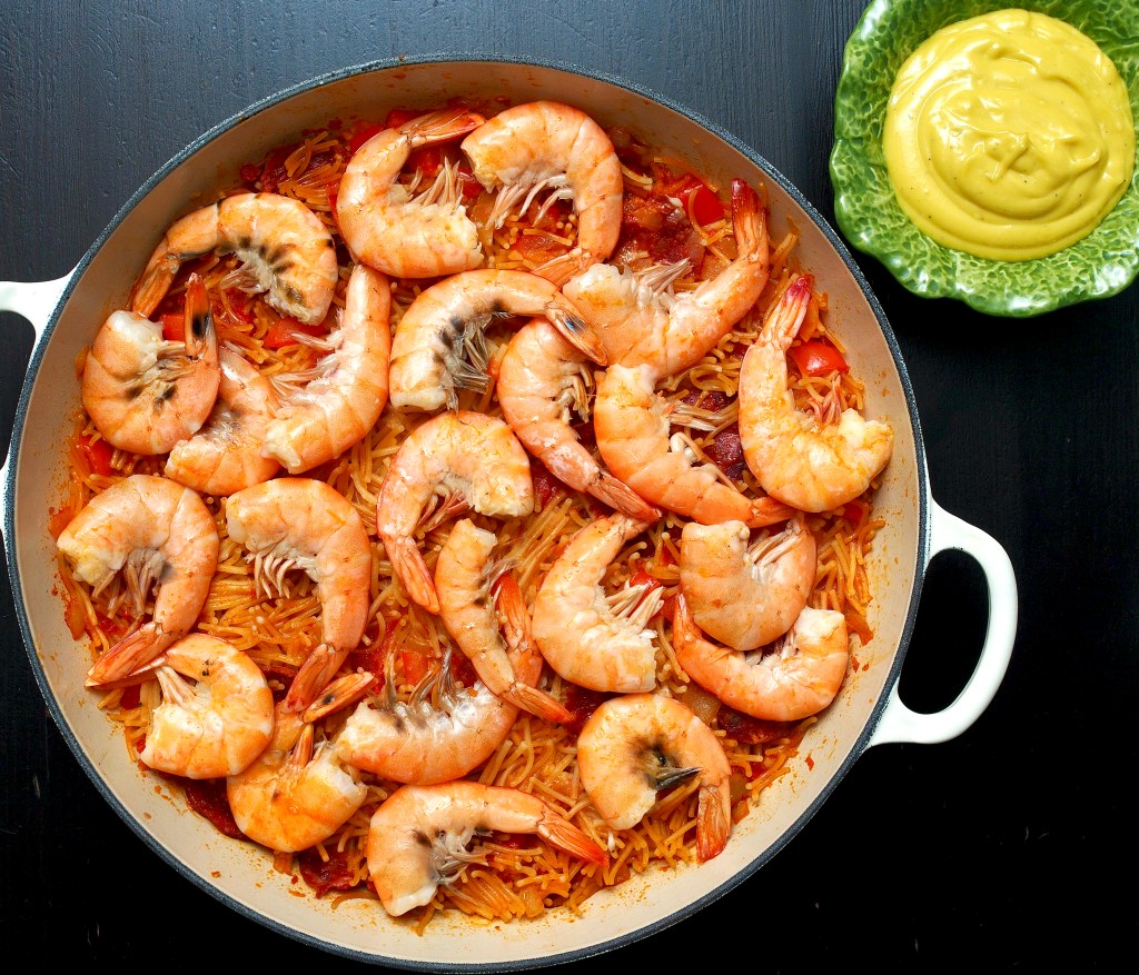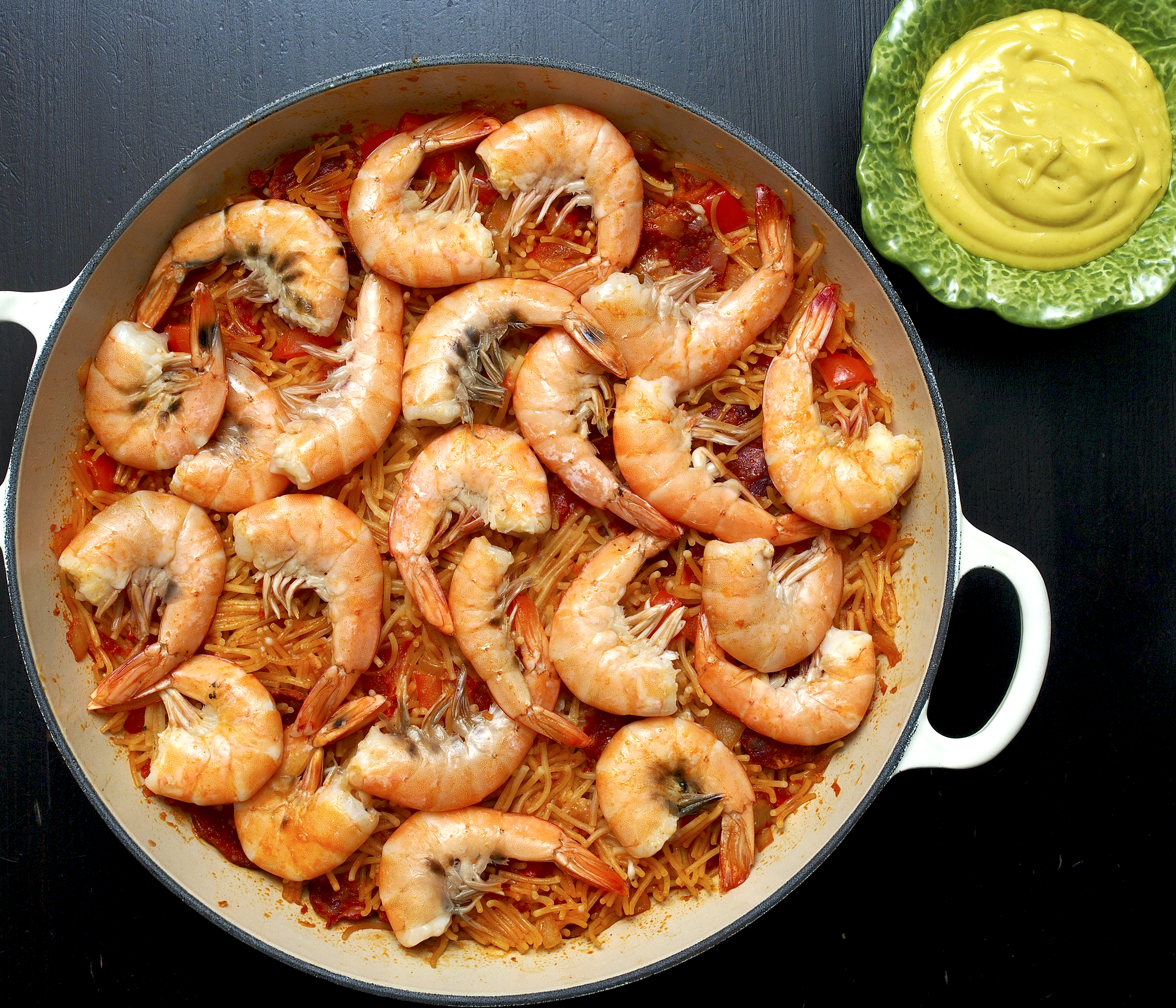 You will need to cook it while everyone is there, but as long as your ingredients are prepped ahead of time, it’s all very straightforward. Make sure you’ve got plenty of bread on hand to soak up all the broth.