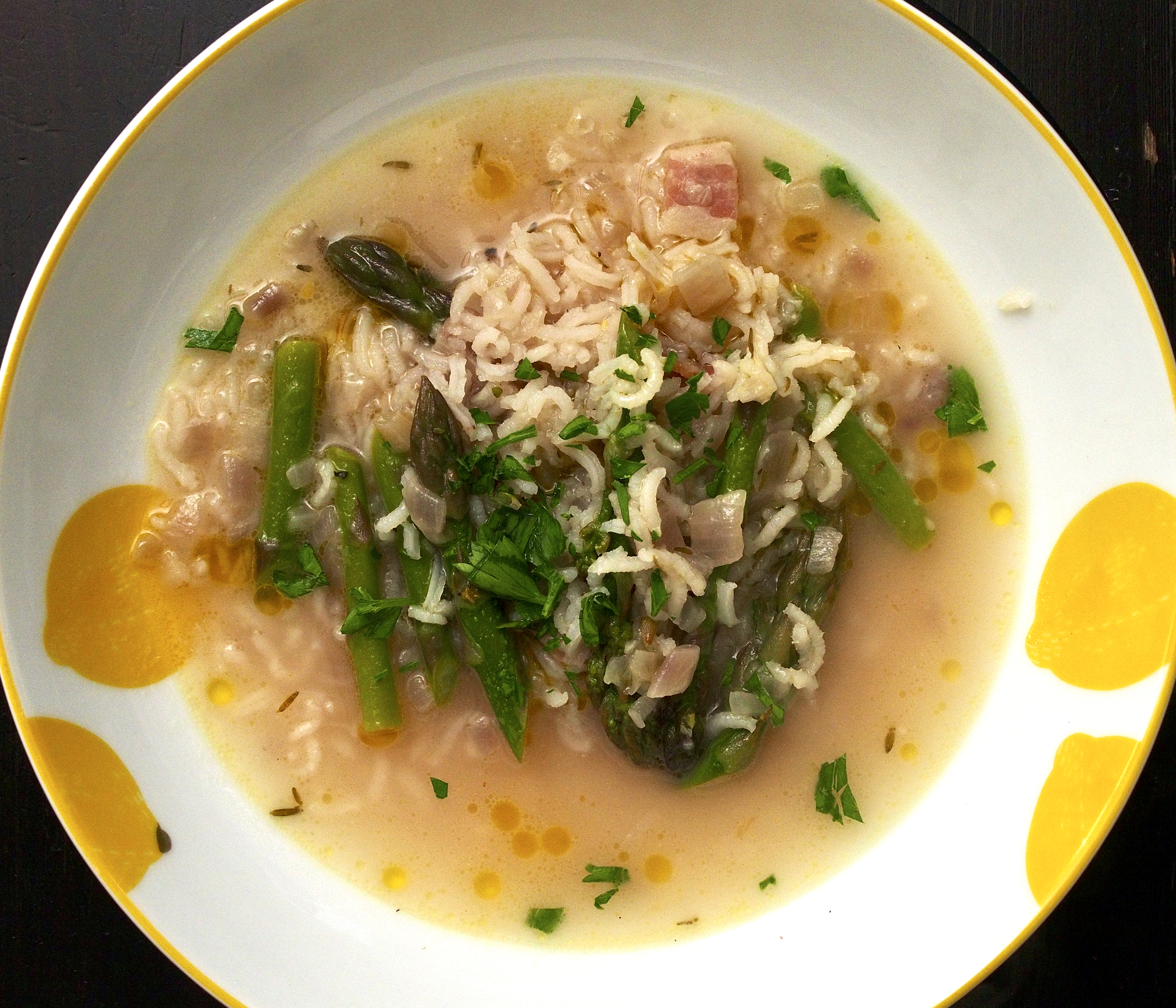 Seve in warm bowls with the rest of the dill, some more black pepper and a drizzle of good olive oil.