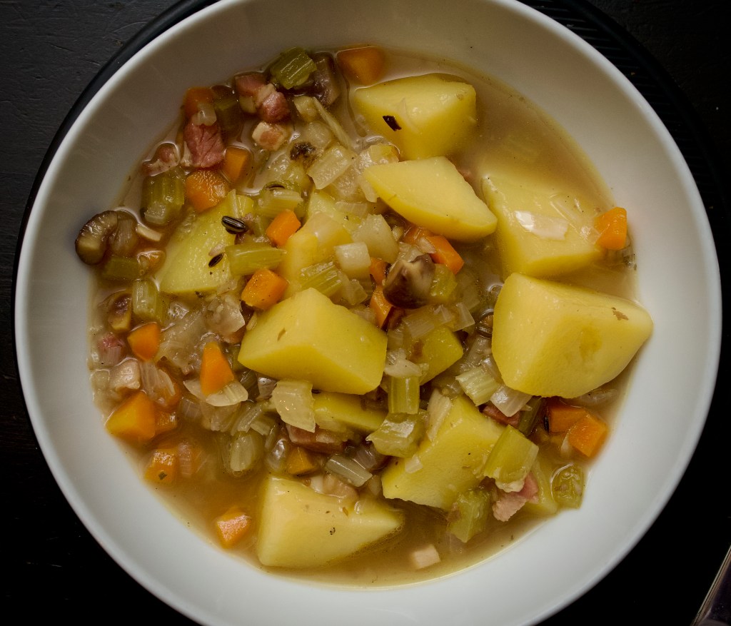 Bring the soup back to a simmer and leave for another 5 to 10 minutes, stirring constantly until thickened slightly. Remove the bay leaves and check the seasoning. Stir in half the dill, then take off the heat and leave to rest for 10 minutes.