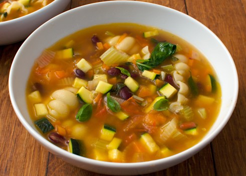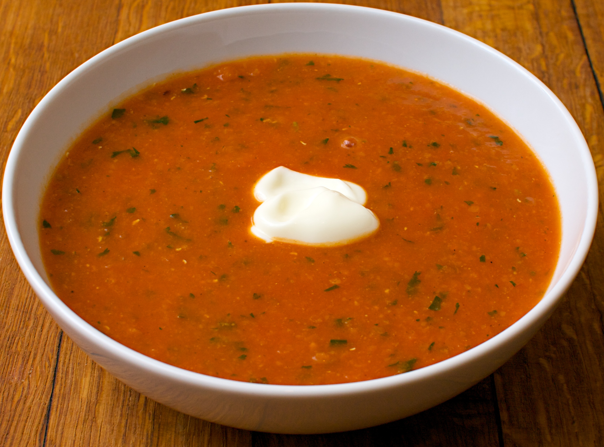 Heat the olive oil in a small frying pan and fry the tomatoes, garlic, celery, parsley and bacon for just a few minutes, then pour into the soup (along with the oil).