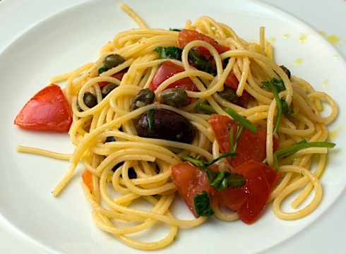 Spaghetti con gamberetti e rucola – serves 4