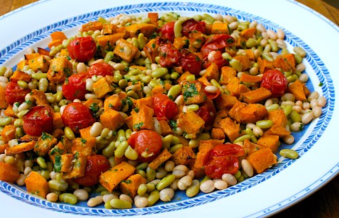Toss the warm squash with all the salad ingredients and the dressing.