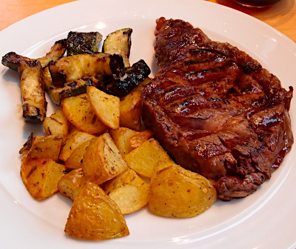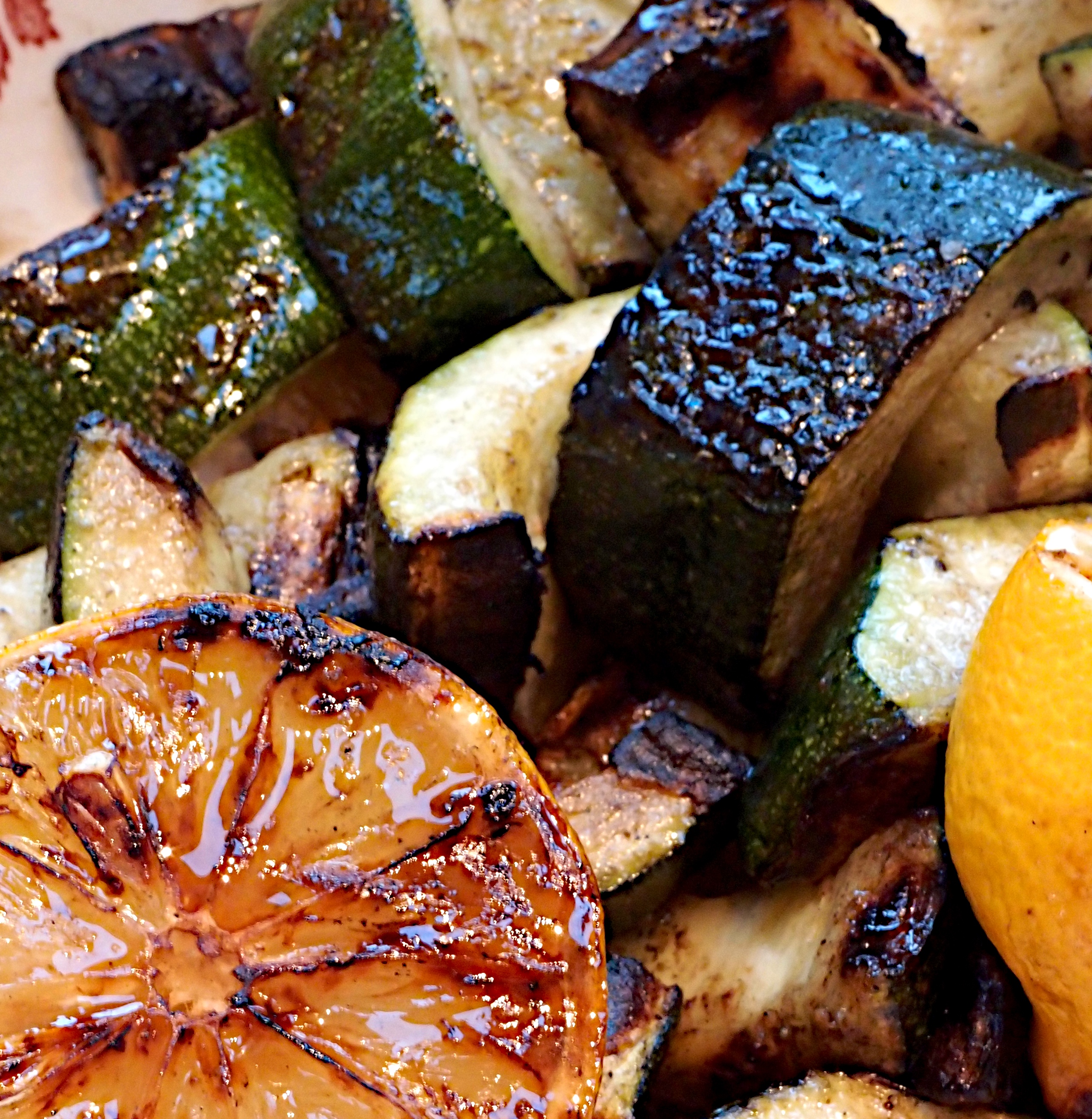 A main course salad with warm elements cooked over charcoal and a delicious dressing. Like everything it tastes best eaten outside.
