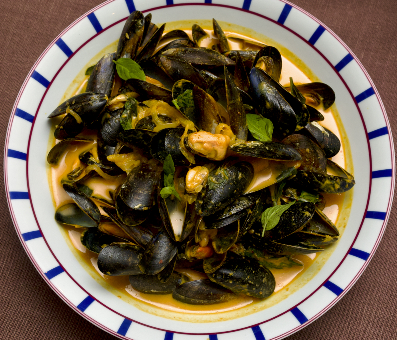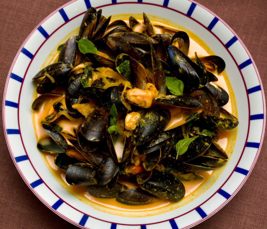 Stir the mussels through the sauce, then add the lime juice and tear in the Thai basil leaves. Serve with lots of crusty bread.