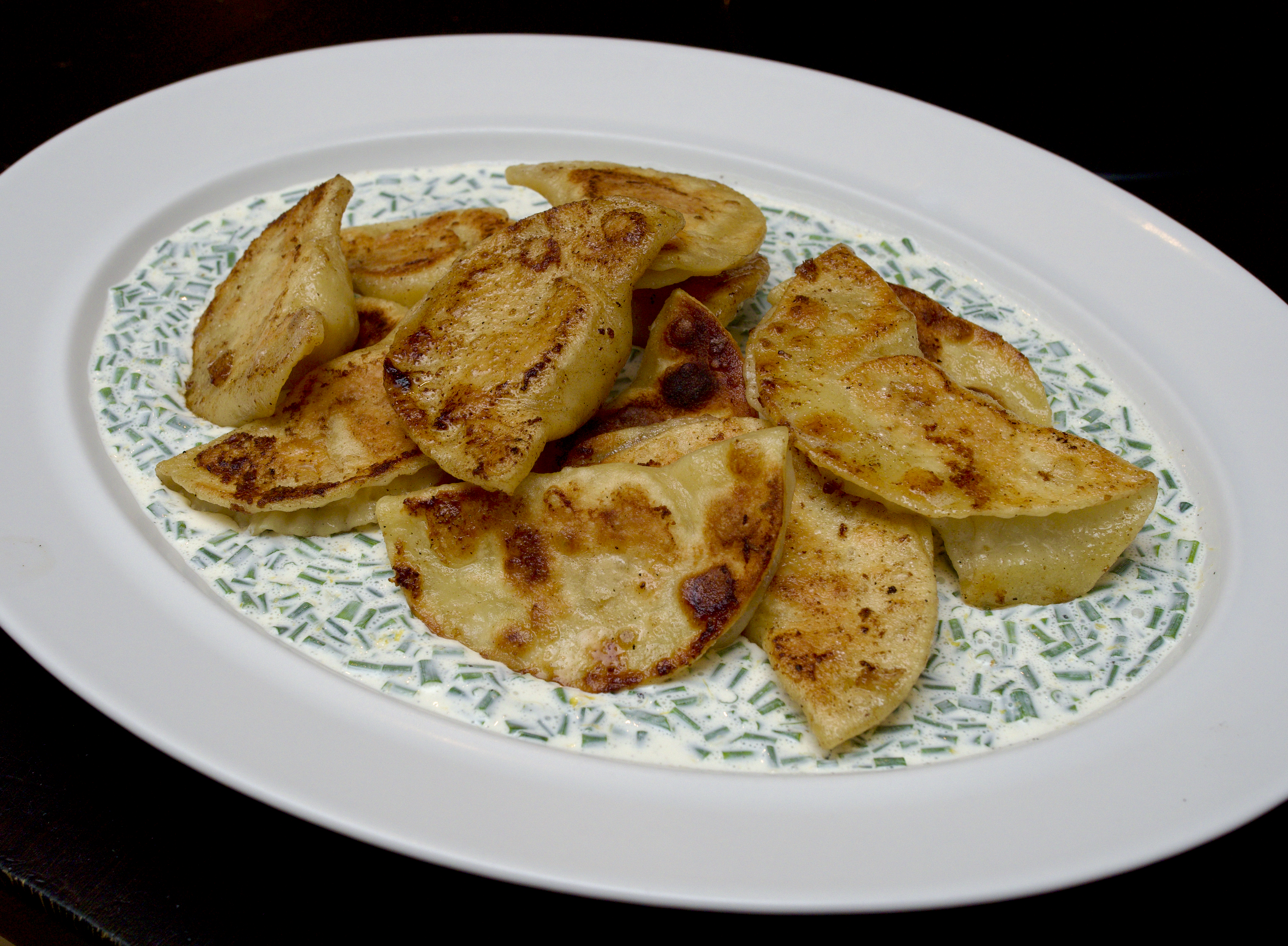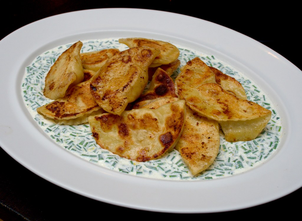 Wine Suggestion: Dry Chenin Blanc, like Domaine des Aubuisières Vouvray “le Marigny”. A dry cuvée that sees a bit of oak and aging on the fine lees giving it extra texture and allowing the minerality to emerge from the precise fuit. The texture in this contrasts with the silkiness of the Pierogi and plays with the sour cream and lemon zest in a good way.